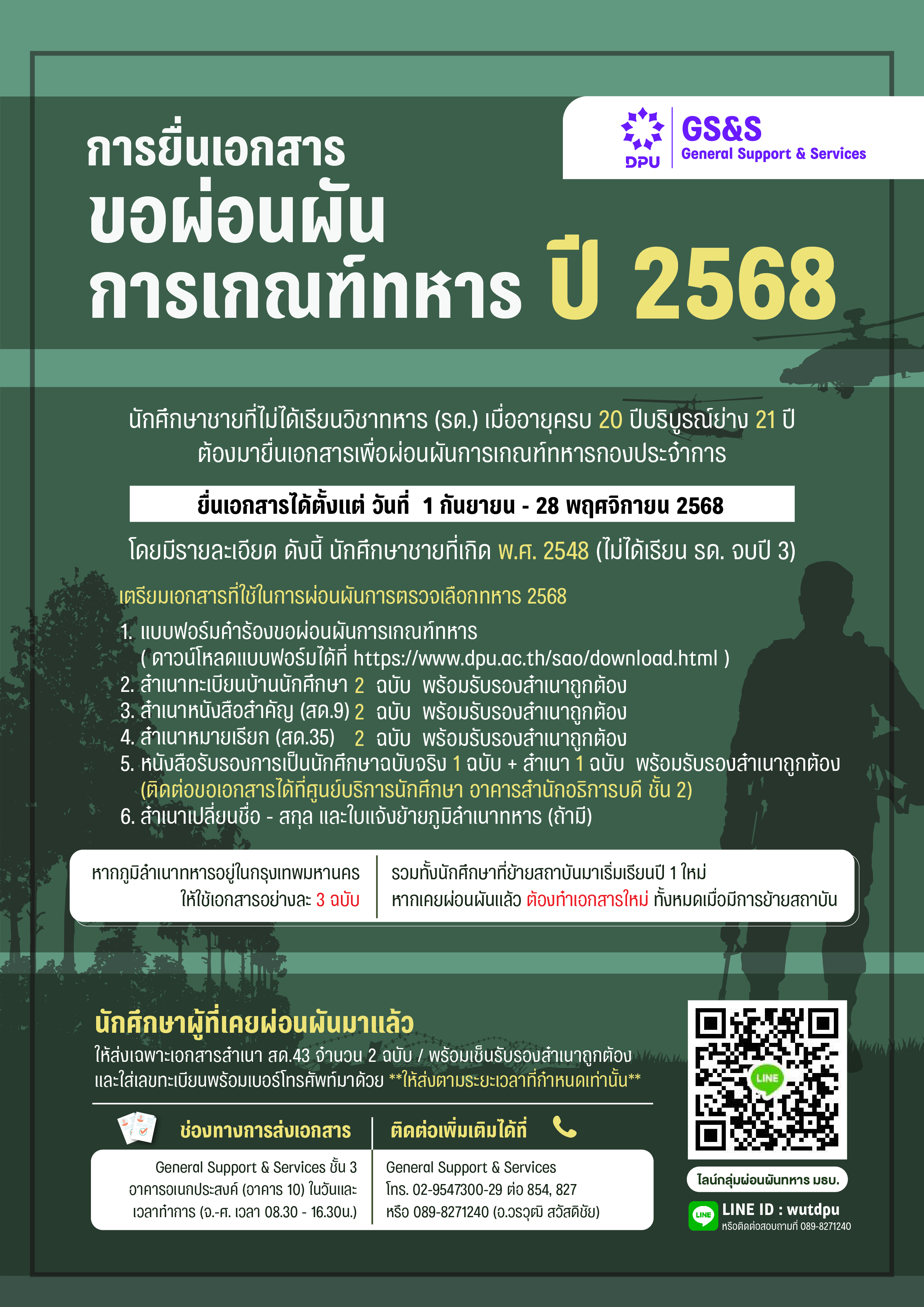 - แบบฟอร์มคำร้องขอผ่อนผันเกณฑ์ทหาร 68