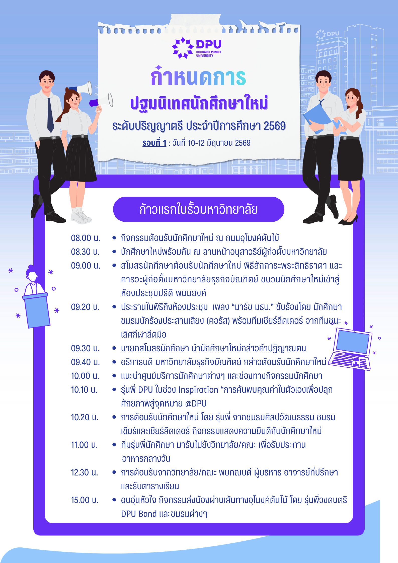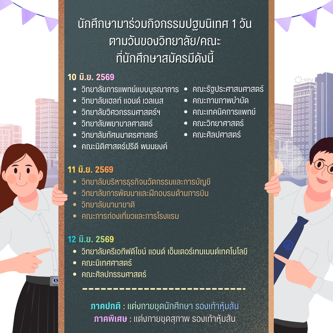 กำหนดการปฐมนิเทศ ปริญญาตรี ปีการศึกษา 2569