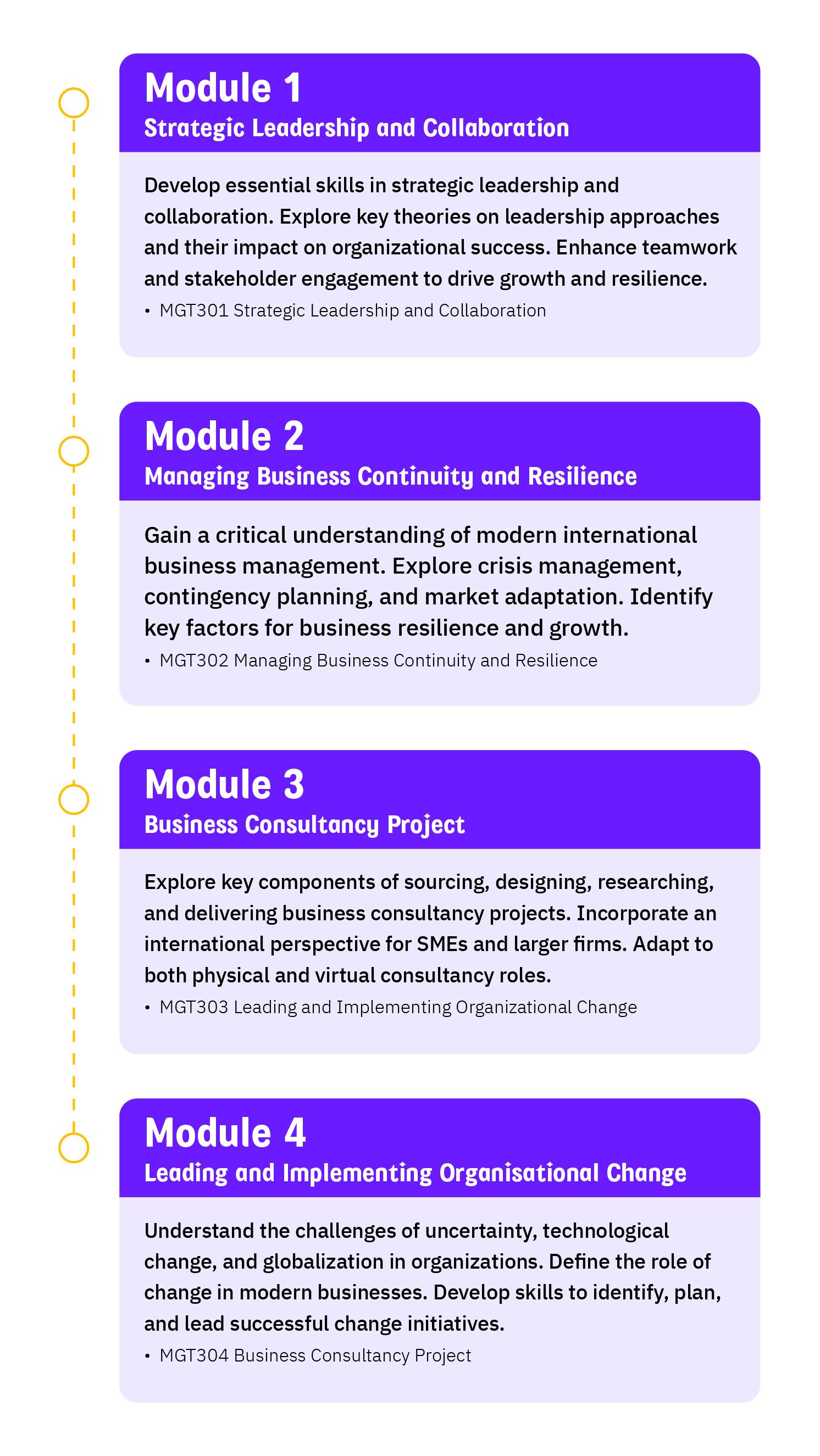 This one-year program allows students to build on their existing knowledge by completing the final year of a UK bachelor's degree curriculum with the University of Sunderland . It offers an efficient and flexible pathway to obtaining an internationally recognised qualification, without the need to start a full four-year degree programme.