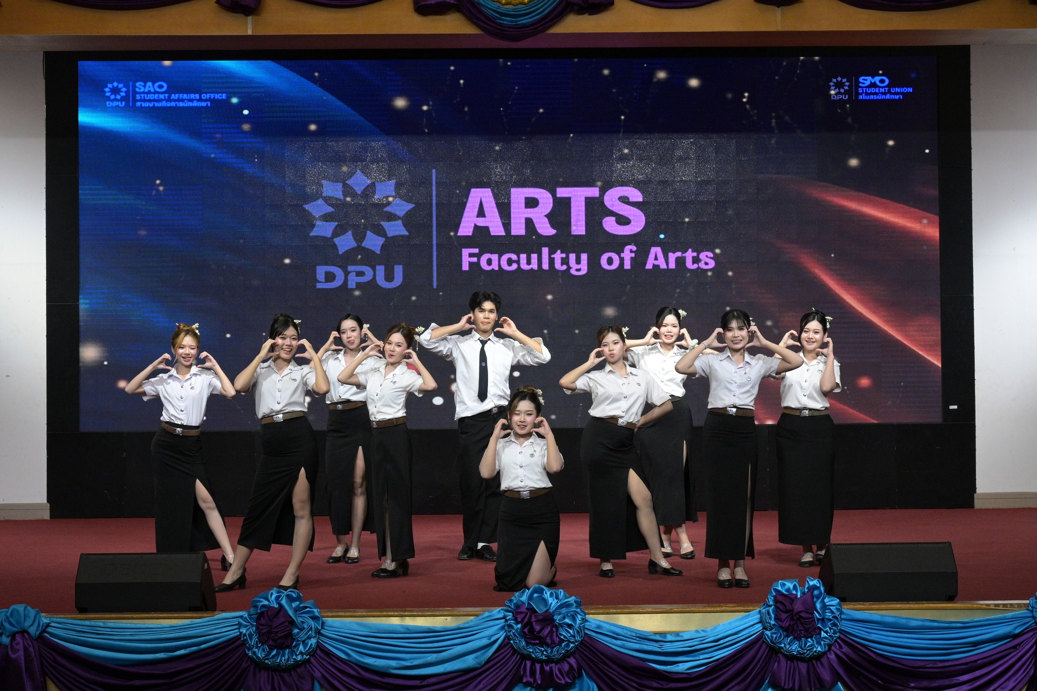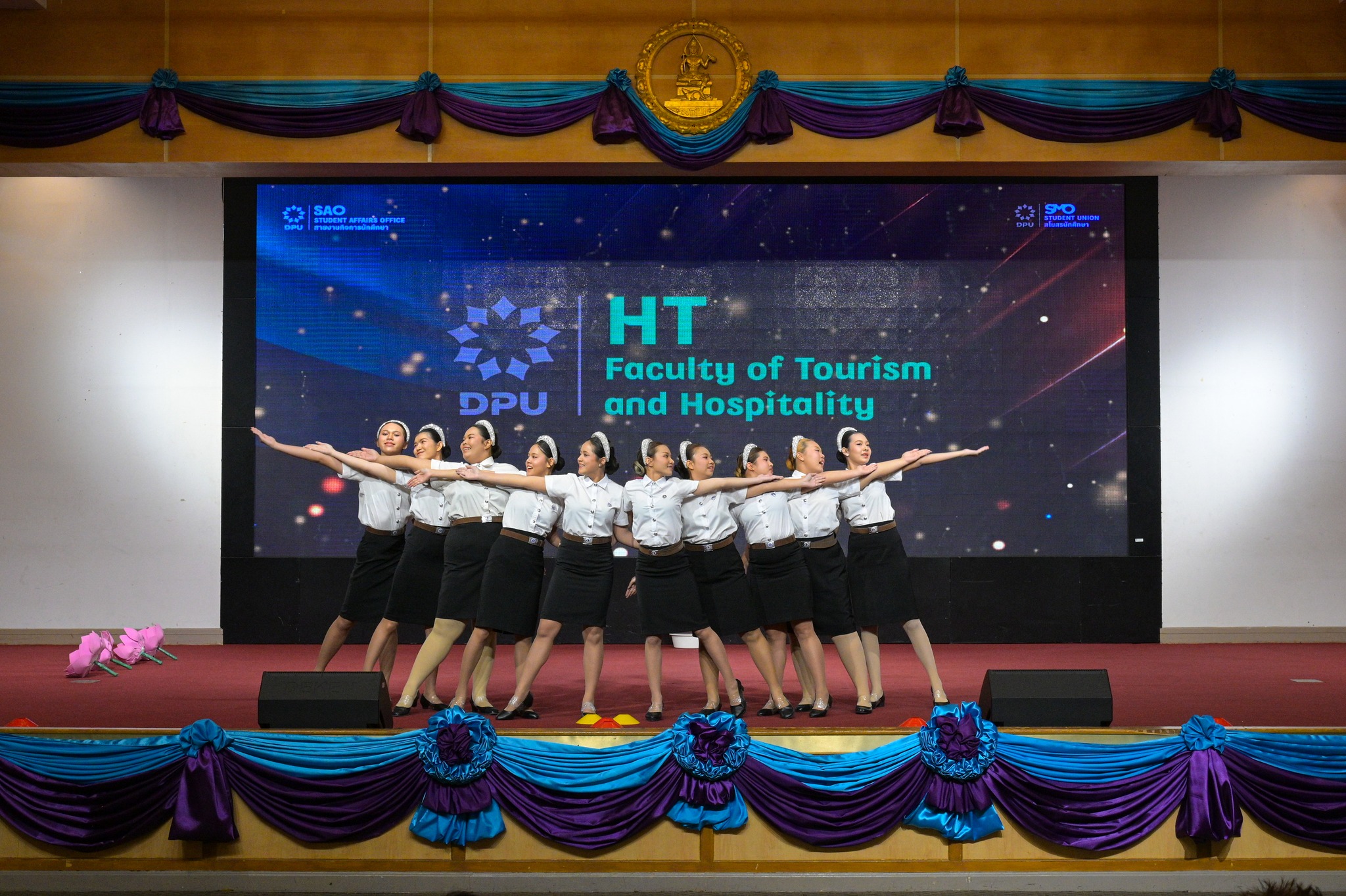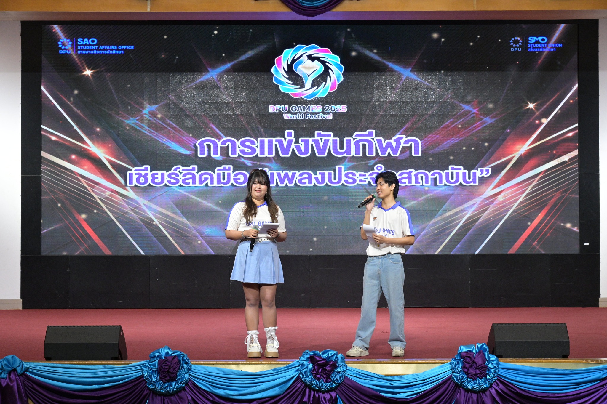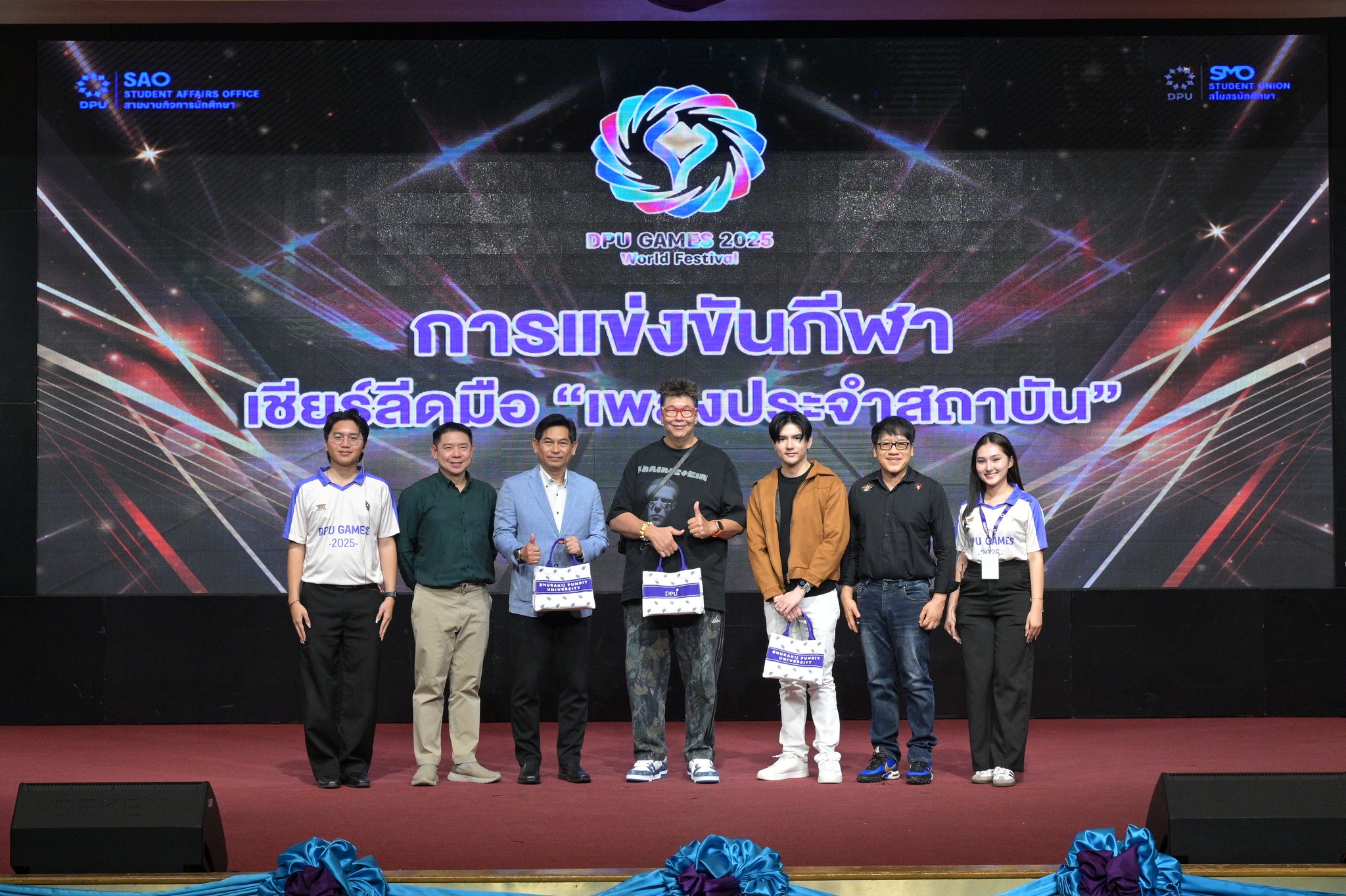 สายงานกิจการนักศึกษา มหาวิทยาลัยธุรกิจบัณฑิตย์ (DPU) จัดการแข่งขันกีฬาเชียร์ลีดมือที่ใช้เพลงประจำสถาบันมาแข่งขัน ประจำปี 2569 ซึ่งเป็นส่วนหนึ่งของมหกรรมกีฬา DPU GAMES 2025 เมื่อวันที่ 18 มีนาคม 2569 ณ ห้องประชุมปรีดี พนมยงค์ โดยมี ผศ.ดร.ทัณฑกานต์ ดวงรัตน์ รองอธิการบดี สายงานกิจการนักศึกษา เป็นประธานเปิดพื้นที่ให้นักศึกษาได้แสดงออกถึงศักยภาพ ความคิดสร้างสรรค์ และความภาคภูมิใจในสถาบันผ่านบทเพลงประจำสถาบัน อาทิ เพลงมาร์ช มธบ. โดยได้รับความสนใจจากนักศึกษาที่เข้าร่วมชมและเชียร์ล้นห้องประชุมกว่า 1,000 คน