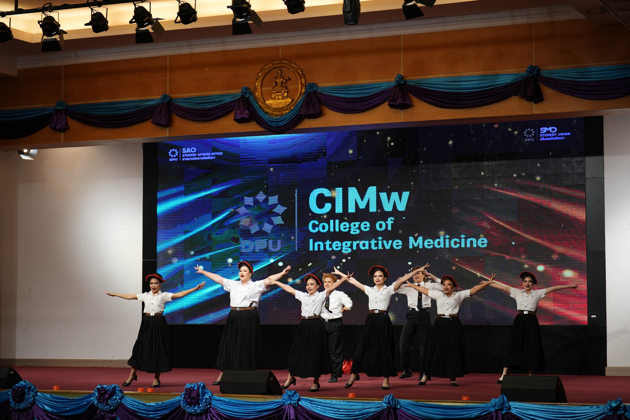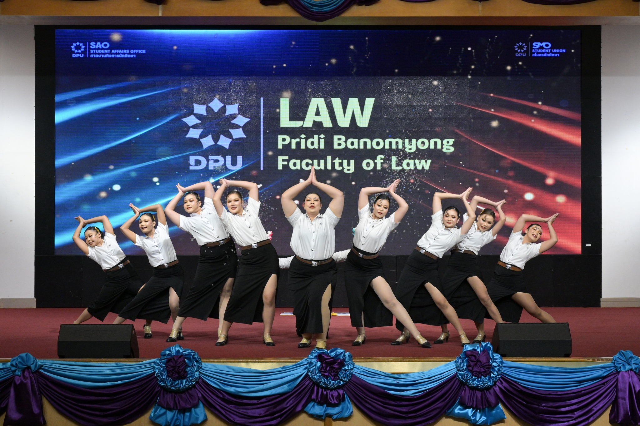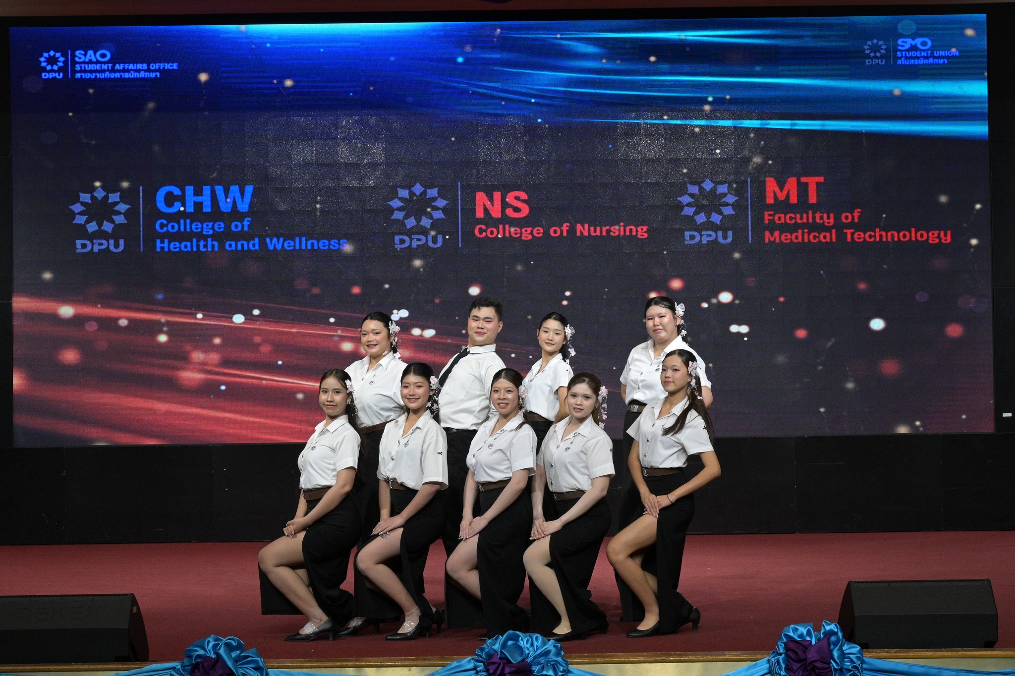 สายงานกิจการนักศึกษา มหาวิทยาลัยธุรกิจบัณฑิตย์ (DPU) จัดการแข่งขันกีฬาเชียร์ลีดมือที่ใช้เพลงประจำสถาบันมาแข่งขัน ประจำปี 2569 ซึ่งเป็นส่วนหนึ่งของมหกรรมกีฬา DPU GAMES 2025 เมื่อวันที่ 18 มีนาคม 2569 ณ ห้องประชุมปรีดี พนมยงค์ โดยมี ผศ.ดร.ทัณฑกานต์ ดวงรัตน์ รองอธิการบดี สายงานกิจการนักศึกษา เป็นประธานเปิดพื้นที่ให้นักศึกษาได้แสดงออกถึงศักยภาพ ความคิดสร้างสรรค์ และความภาคภูมิใจในสถาบันผ่านบทเพลงประจำสถาบัน อาทิ เพลงมาร์ช มธบ. โดยได้รับความสนใจจากนักศึกษาที่เข้าร่วมชมและเชียร์ล้นห้องประชุมกว่า 1,000 คน