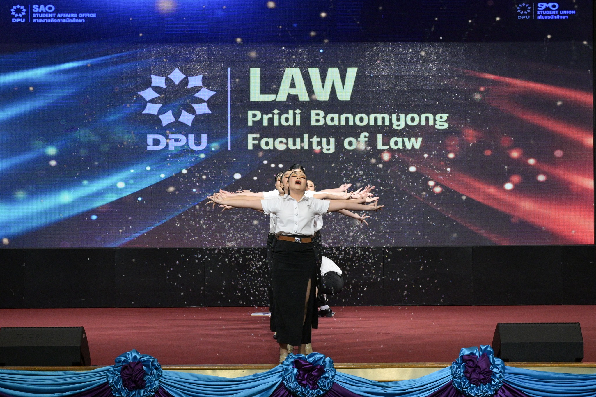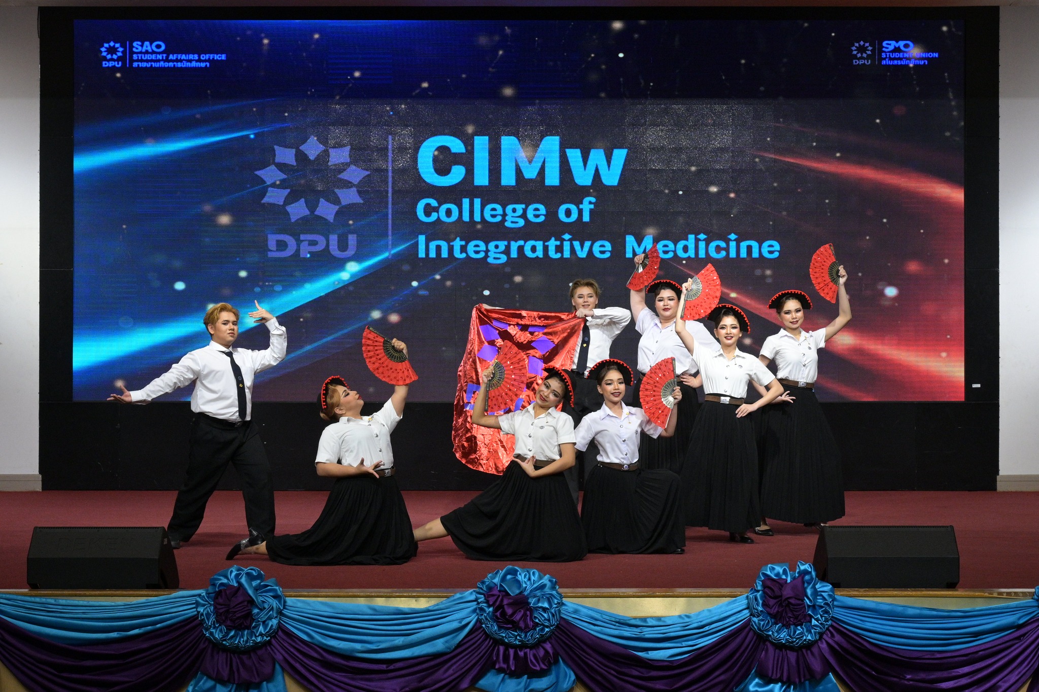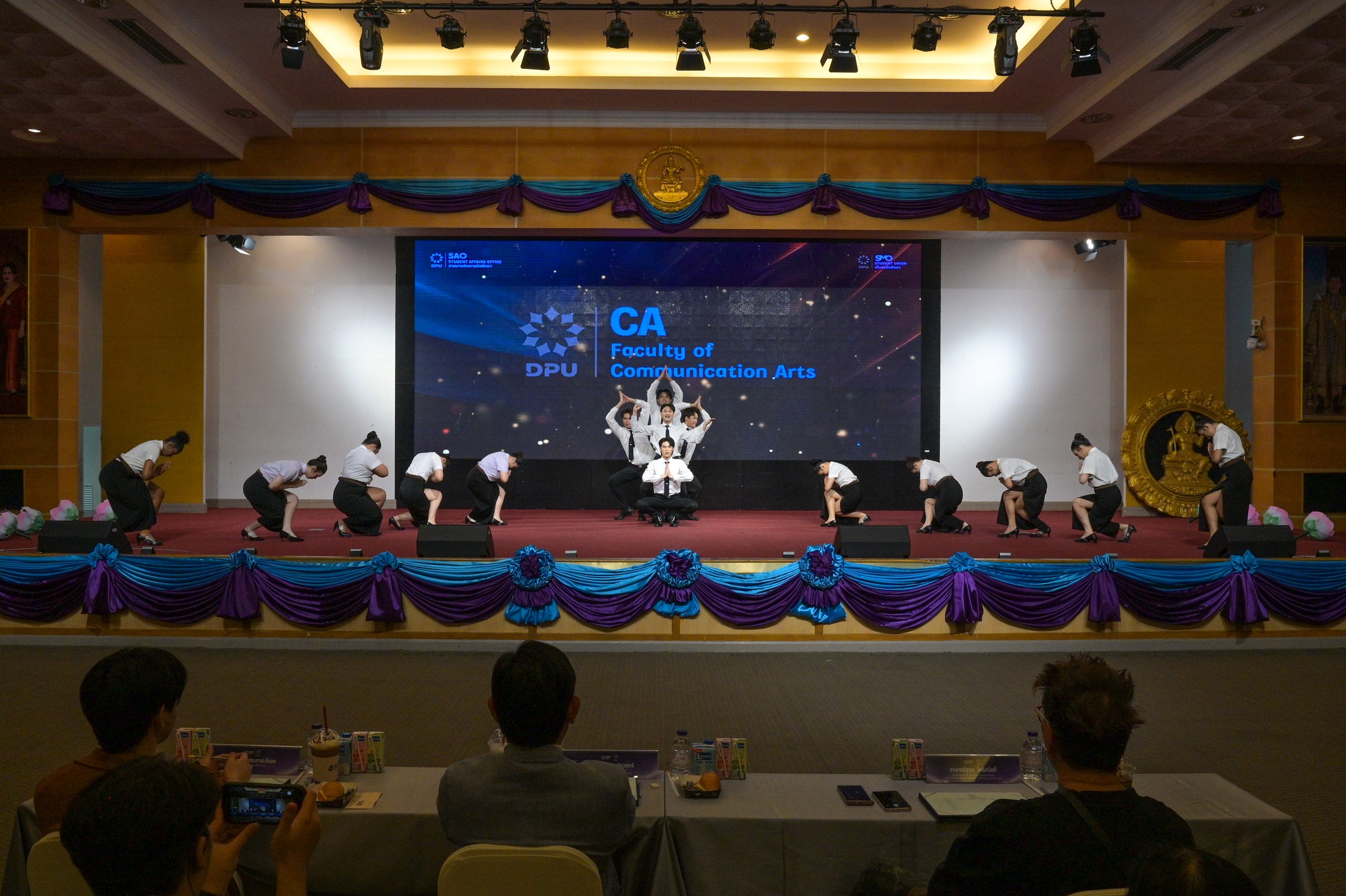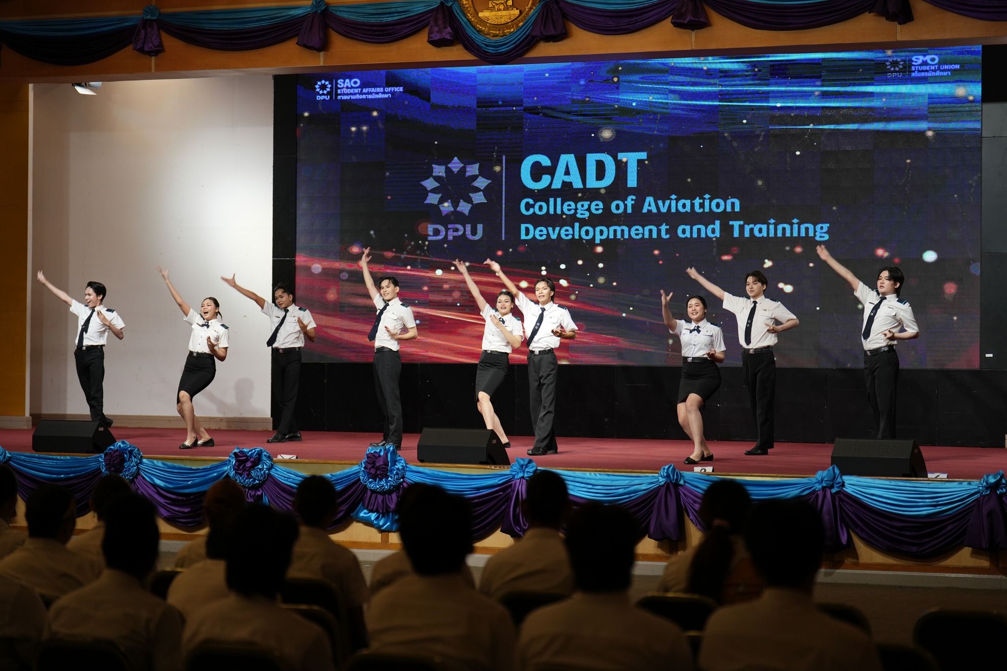 สายงานกิจการนักศึกษา มหาวิทยาลัยธุรกิจบัณฑิตย์ (DPU) จัดการแข่งขันกีฬาเชียร์ลีดมือที่ใช้เพลงประจำสถาบันมาแข่งขัน ประจำปี 2569 ซึ่งเป็นส่วนหนึ่งของมหกรรมกีฬา DPU GAMES 2025 เมื่อวันที่ 18 มีนาคม 2569 ณ ห้องประชุมปรีดี พนมยงค์ โดยมี ผศ.ดร.ทัณฑกานต์ ดวงรัตน์ รองอธิการบดี สายงานกิจการนักศึกษา เป็นประธานเปิดพื้นที่ให้นักศึกษาได้แสดงออกถึงศักยภาพ ความคิดสร้างสรรค์ และความภาคภูมิใจในสถาบันผ่านบทเพลงประจำสถาบัน อาทิ เพลงมาร์ช มธบ. โดยได้รับความสนใจจากนักศึกษาที่เข้าร่วมชมและเชียร์ล้นห้องประชุมกว่า 1,000 คน