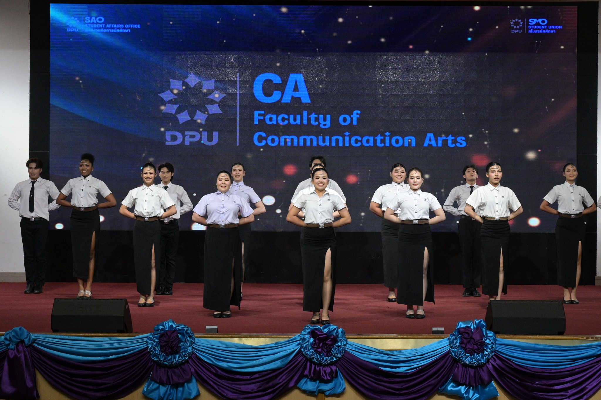 สอดคล้องกับการประชันความพร้อมเพรียงบนเวที ที่กลุ่มนักศึกษาฝ่ายสนับสนุนเบื้องหลังต่างได้รับโอกาสฝึกฝนทักษะการจัดการผ่านสถานการณ์จริงไม่ต่างกัน โดย นายอิทธิพัทธ์ รีเพ็ง นักศึกษาชั้นปีที่ 2 คณะนิเทศศาสตร์ ในตำแหน่งผู้ช่วยประธานสวัสดิการ สโมสรนักศึกษา ให้ข้อมูลด้วยความภาคภูมิใจถึงการร่วมปฏิบัติหน้าที่กับคณะทำงานสโมสรนักศึกษา ภายใต้การนำของ นายพิสิษฐ์ ถิระเรืองตระกูล นายกสโมสรนักศึกษา