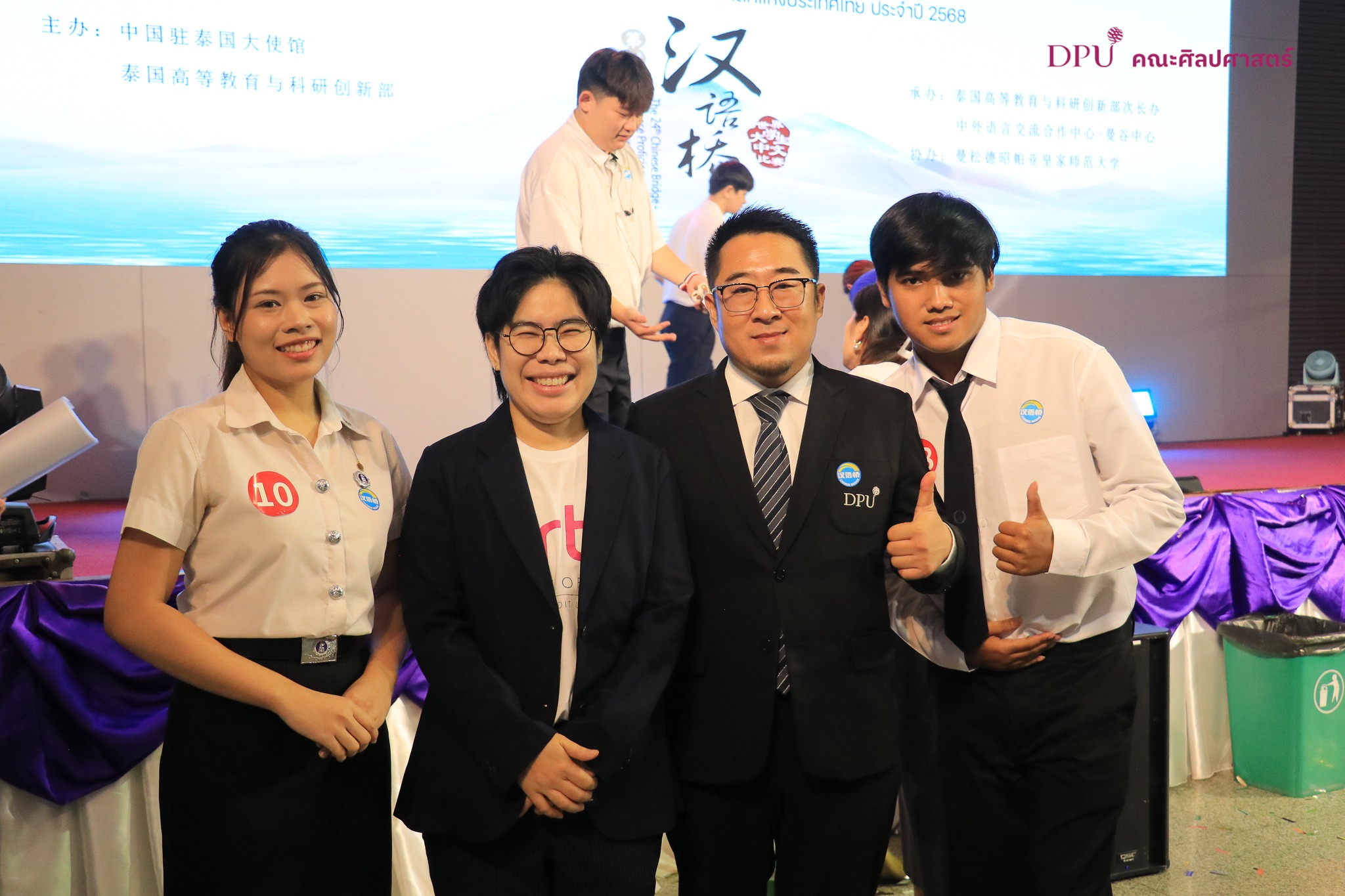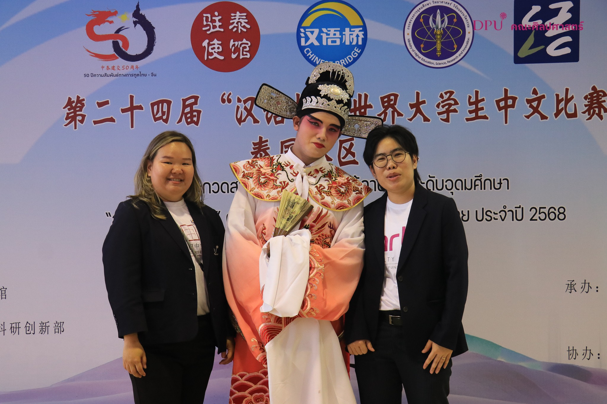 เมื่อวันที่ 2 กรกฎาคม 2568 ที่ผ่านมา สองนักศึกษาจากหลักสูตรภาษาจีนธุรกิจ มหาวิทยาลัยธุรกิจบัณฑิตย์ (DPU) ประสบความสำเร็จอย่างน่าชื่นชมยิ่ง โดยนางสาวจารุวรรณ ด้วงหิรัญ นักศึกษาชั้นปีที่ 3 สามารถคว้ารางวัลรองชนะเลิศอันดับ 1 และรางวัลความสามารถพิเศษยอดเยี่ยม ส่วนนายธีรวุธ คงสุกิจ นักศึกษาชั้นปีที่ 1 ได้รับรางวัลรองชนะเลิศอันดับ 2