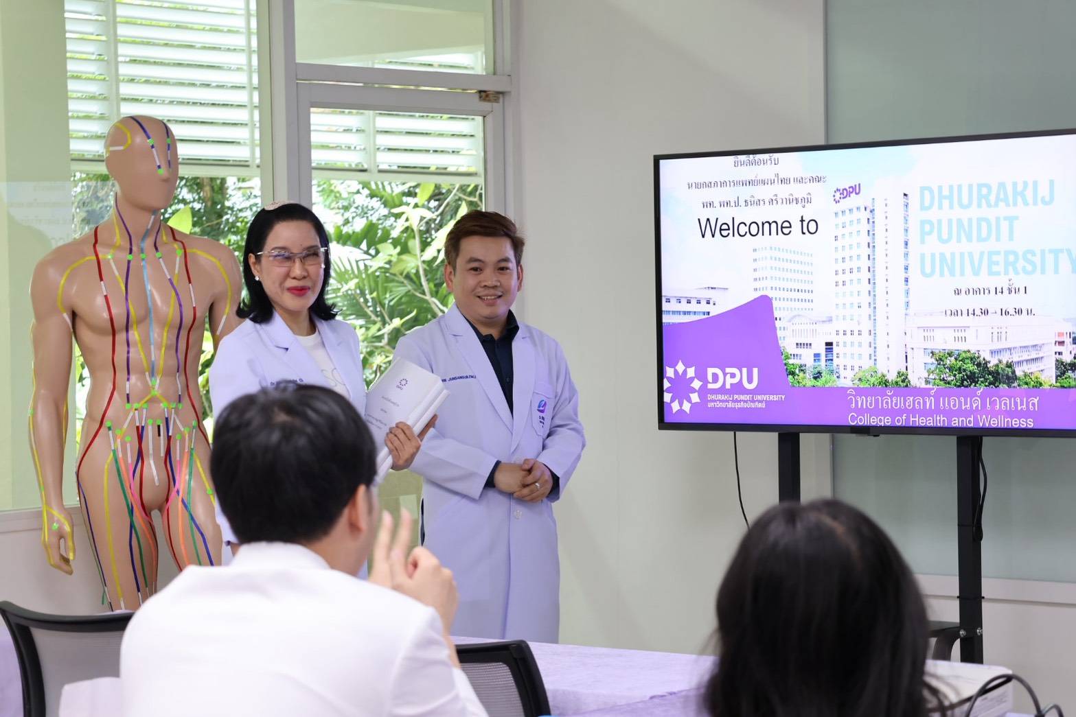 มหาวิทยาลัยธุรกิจบัณฑิตย์ (DPU) นำโดย รศ.ดร.ภก.สุรพจน์ วงศ์ใหญ่ คณบดีวิทยาลัยเฮลท์ แอนด์ เวลเนส และผู้เชี่ยวชาญสมุนไพรขององค์การสหประชาชาติ พร้อมด้วย ดร.พท.คณิศร์ณิชา ชาญภา รองคณบดีฯ ฝ่ายการแพทย์แผนไทย และผู้อำนวยการดี ซักเซส คลินิกแพทย์แผนไทย ให้การต้อนรับ พท.พท.ป. ธนิสร ศรีวานิชภูมิ นายกสภาการแพทย์แผนไทยและคณะ ในโอกาสเข้าเยี่ยมวิทยาลัยและแลกเปลี่ยนแนวคิดด้านวิชาการ และ งานด้านคลินิกแพทย์แผนไทย การจัดหลักสูตรพัฒนาศักยภาพแพทย์แผนไทย และระบบการจัดการศึกษาแพทย์แผนไทยเชิงนวัตกรรม เมื่อวันที่ 22 มกราคม 2569 ณ ดี ซักเซส คลินิกการแพทย์แผนไทย อาคาร 14 ชั้น 1 มหาวิทยาลัยธุรกิจบัณฑิตย์