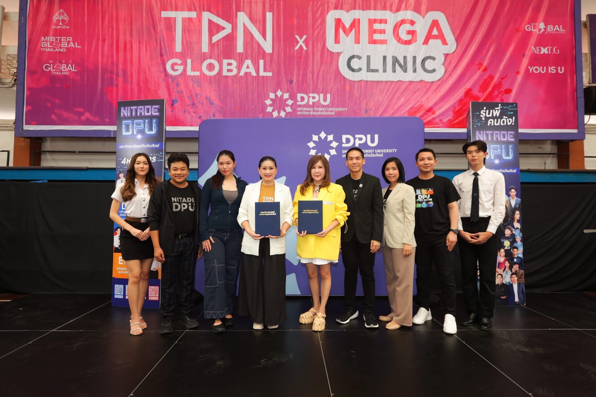 ทั้งนี้การลงนาม MOU ครั้งนี้จัดขึ้นท่ามกลางบรรยากาศของกิจกรรม TPNG SPIRIT SPORTS DAY X MEGA CLINIC ซึ่งนับเป็นจุดเริ่มต้นสำคัญของความร่วมมือระหว่างคณะนิเทศศาสตร์ DPU และ TPN GLOBAL อีกทั้งยังเป็นพื้นที่ ที่เปิดโอกาสให้นักศึกษาคณะนิเทศศาสตร์ DPU ได้ลงมือปฏิบัติจริงในการจัดอีเวนต์ สอดคล้องกับแนวคิด Learning by Doing และเป็นการบ่มเพาะประสบการณ์ตั้งแต่วันแรกของความร่วมมือครั้งประวัติศาสตร์นี้