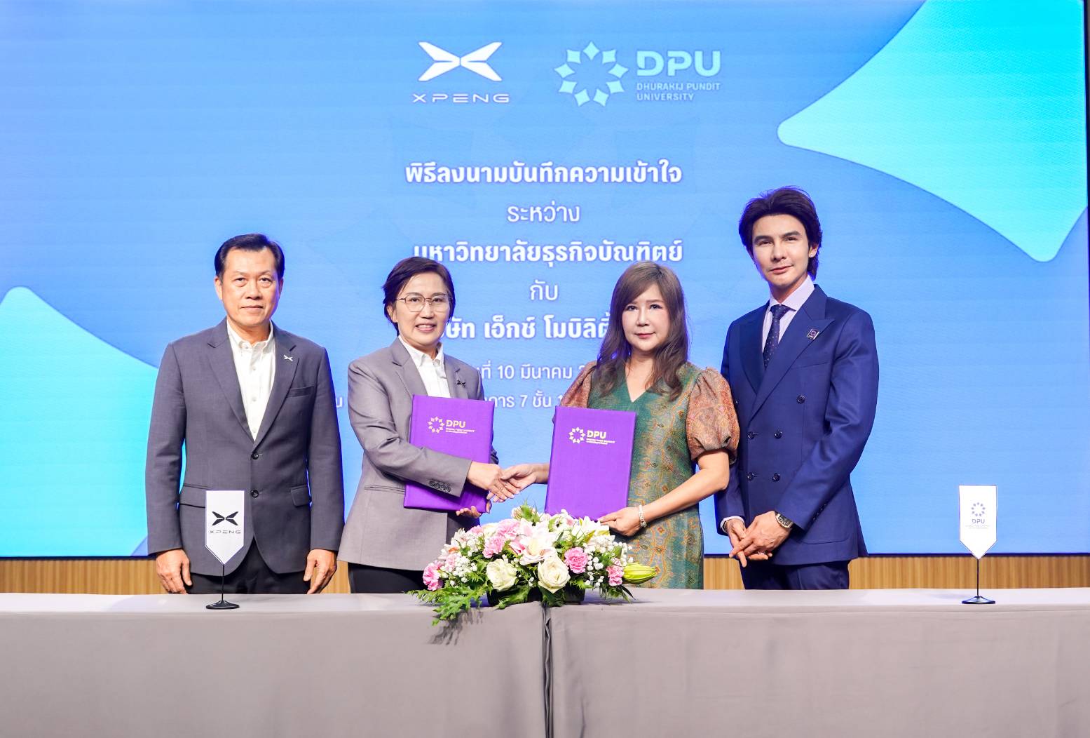 มหาวิทยาลัยธุรกิจบัณฑิตย์ (DPU) เดินหน้าสร้างความร่วมมือกับภาคอุตสาหกรรมยานยนต์ไฟฟ้าอย่างเป็นรูปธรรม โดยลงนามบันทึกความเข้าใจ (MOU) ร่วมกับ บริษัท เอ็กซ์ โมบิลิตี้ (ประเทศไทย) จำกัด ผู้นำเข้าและจัดจำหน่ายรถยนต์ไฟฟ้า XPENG อย่างเป็นทางการในประเทศไทย เพื่อร่วมกันพัฒนาการศึกษา งานวิจัย และการสร้างกำลังคนด้านเทคโนโลยียานยนต์ไฟฟ้า (EV) ให้สอดคล้องกับความต้องการของอุตสาหกรรมในอนาคต จัดขึ้นเมื่อวันที่ 10 มีนาคม 2569 ณ ห้องสุทธิเกตุ (7-1) มหาวิทยาลัยธุรกิจบัณฑิตย์