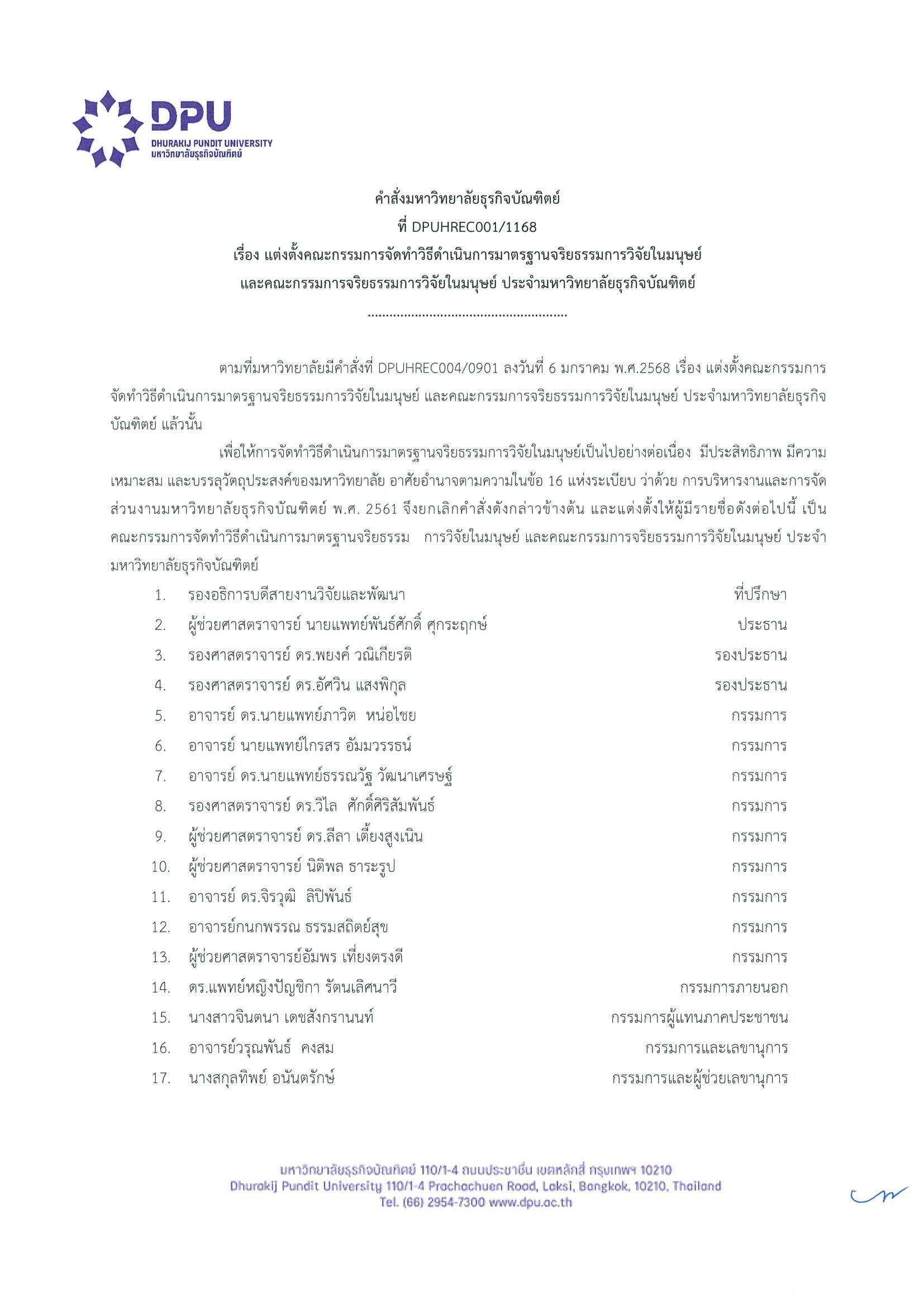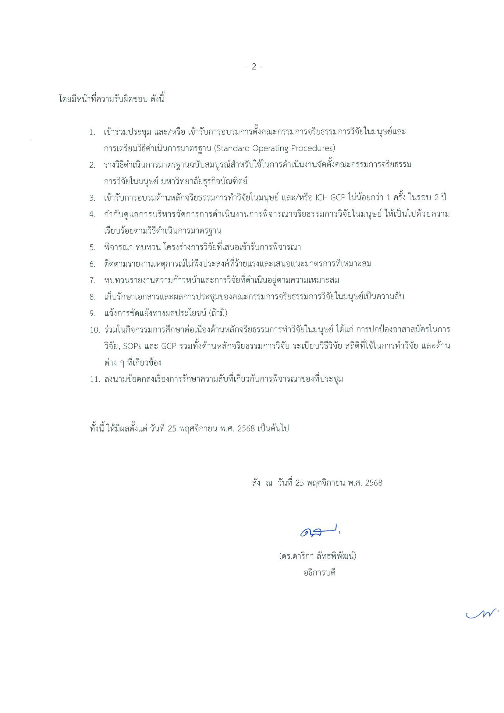 คำสั่งแต่งตั้งคณะกรรมการจริยธรรมการวิจัยในมนุษย์