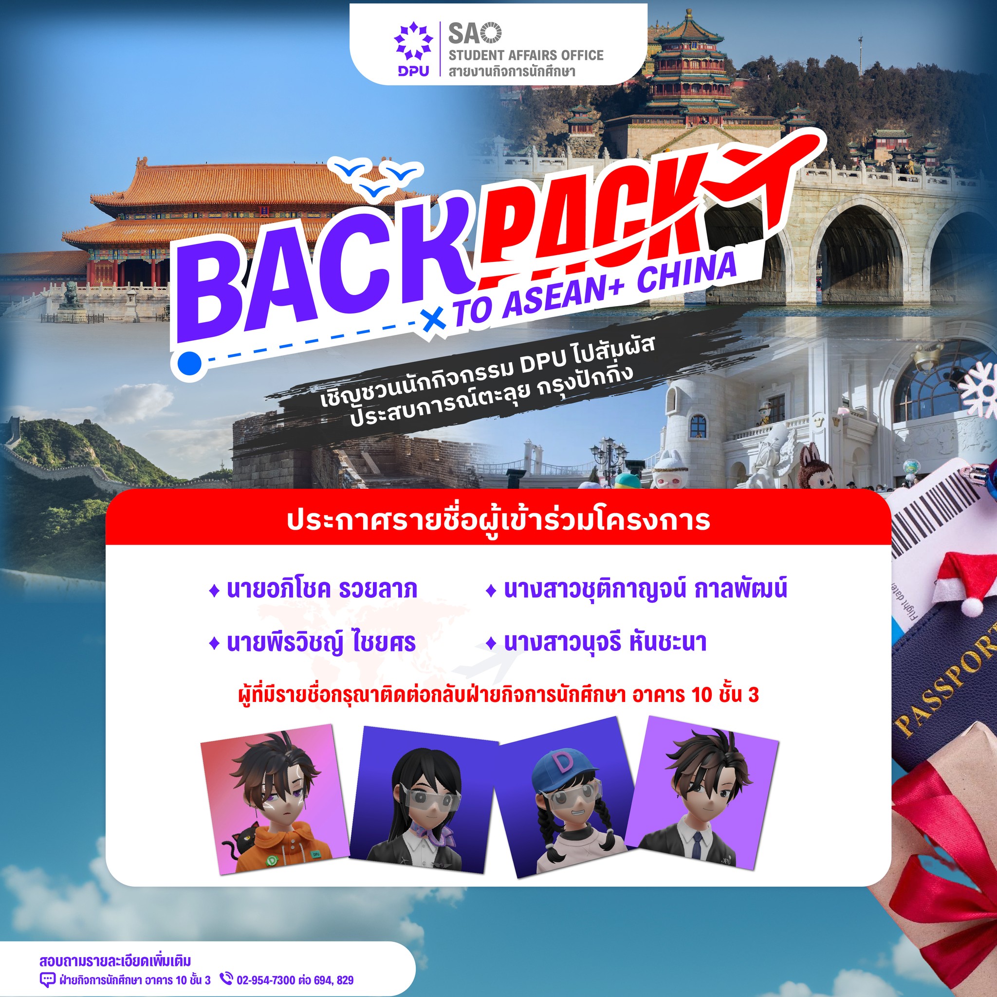 ขอแสดงความยินดีกับ...ผู้ที่ได้รับคัดเลือกโครงการ BACKPACK TO ASEAN + CHINA ทั้ง 4 คน
