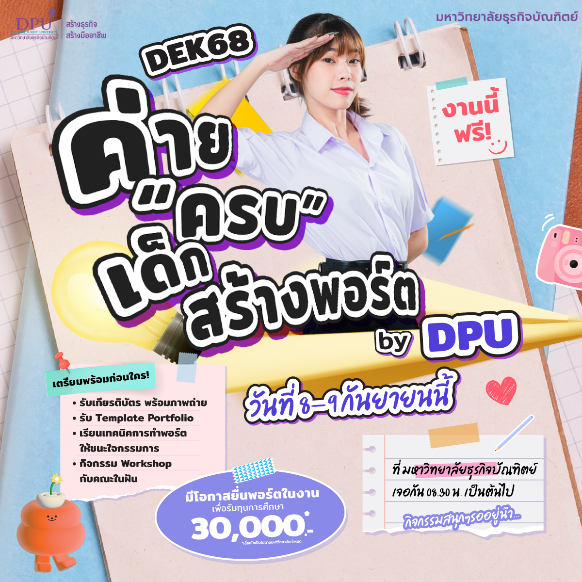 ✅ โอกาสยื่น Portfolio กับ DPU รับทุนการศึกษาสูงสุด 30,000*.-