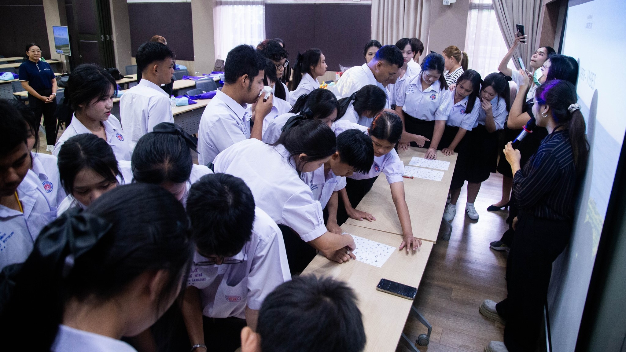 นอกจากการบรรยายเชิงแนวคิดแล้ว ยังมีการจัดกิจกรรมเกมและเวิร์กช็อปสั้น ๆ โดยรุ่นพี่นักศึกษา CIBA เปิดโอกาสให้น้อง ๆ ได้ทดลองคิดและออกแบบไอเดียธุรกิจขนาดเล็กที่สามารถเกิดขึ้นได้จริงในภูเก็ต ตั้งแต่ร้านขนมพื้นเมือง ร้านคาเฟ่ ร้านของฝาก ไปจนถึงบริการออนไลน์ พร้อมชวนวิเคราะห์ว่า หากต้องการให้ธุรกิจเป็นที่รู้จัก ควรใช้โซเชียลมีเดีย ช่องทางดิจิทัล และการเล่าเรื่องอย่างไรให้ตอบโจทย์กลุ่มเป้าหมาย