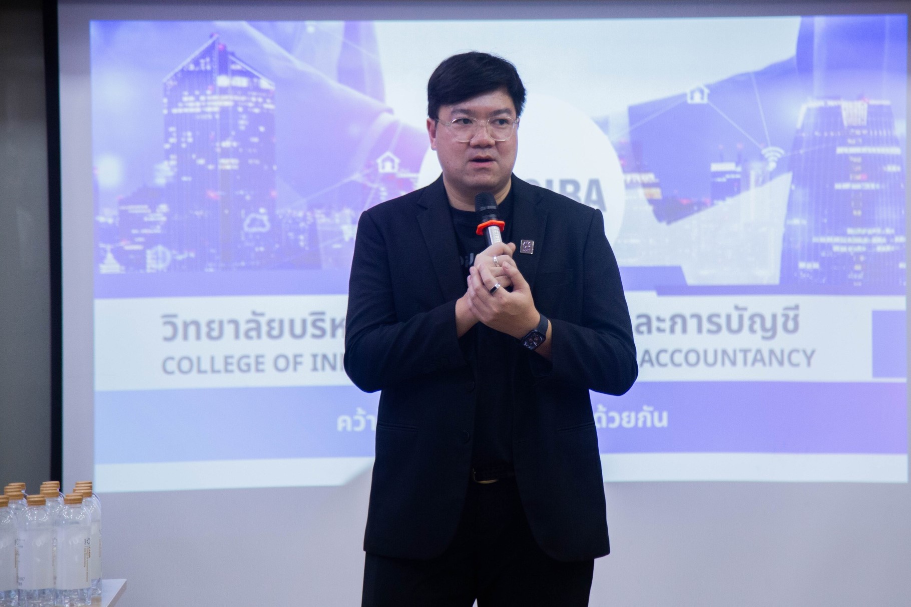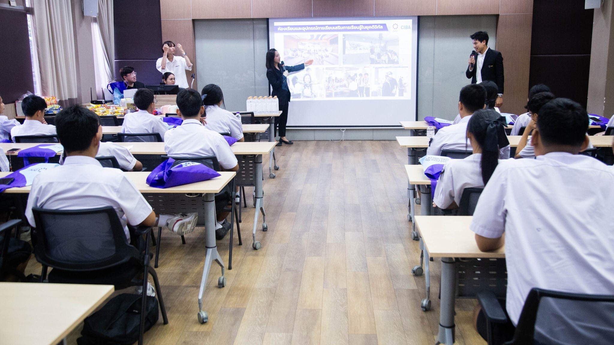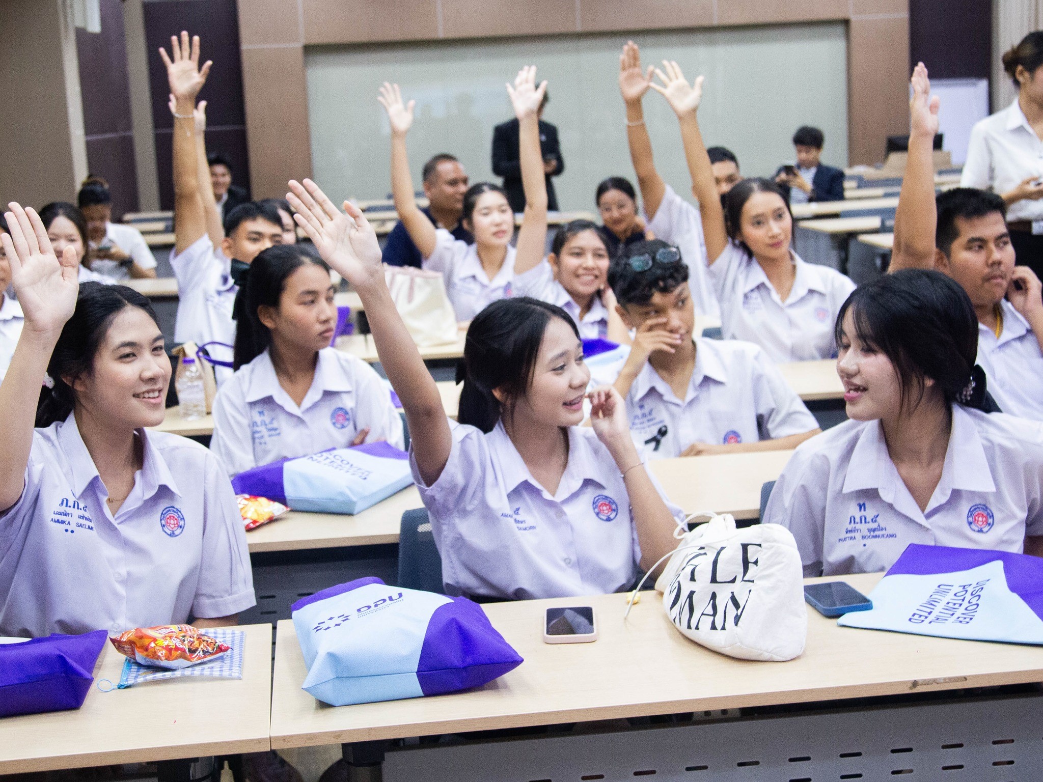 ในช่วงพิธีต้อนรับ ดร.วรัญญู ศรีเชียงราย รองคณบดีวิทยาลัยบริหารธุรกิจนวัตกรรมและการบัญชี (CIBA) มหาวิทยาลัยธุรกิจบัณฑิตย์ กล่าวต้อนรับคณะครูและนักเรียน พร้อมสะท้อนบทบาทของเยาวชนยุคดิจิทัลว่า นักเรียนรุ่นใหม่เติบโตมากับเทคโนโลยีอยู่แล้ว แต่สิ่งสำคัญคือการเข้าใจว่าธุรกิจและเทคโนโลยีทำงานร่วมกันอย่างไร หากเข้าใจทั้งสองมิติ จะไม่เป็นเพียงผู้ใช้เทคโนโลยี แต่สามารถพัฒนาตนเองไปสู่การเป็นผู้สร้างโอกาส ไม่ว่าจะในฐานะพนักงานมืออาชีพหรือผู้ประกอบการในอนาคต