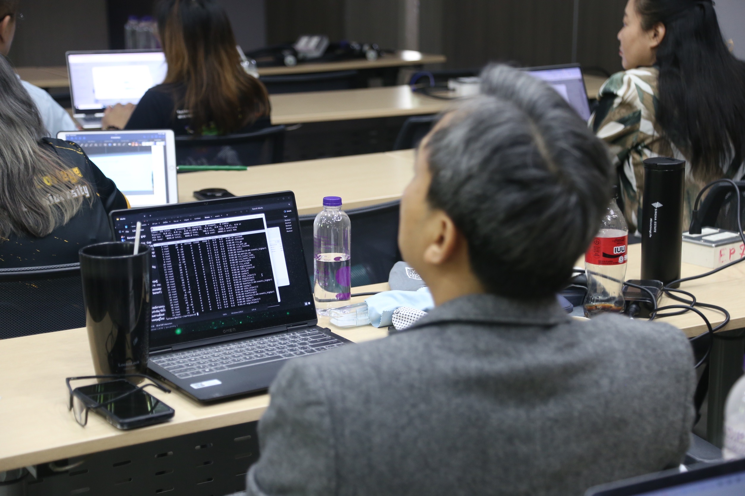 ขณะที่ในช่วงบ่าย การอบรมเข้มข้นด้วย Workshop ที่ผู้เข้าร่วมจะต้องสร้างกิจกรรมการเรียนการสอนผ่าน LLM โดยมีอาจารย์ผู้มีประสบการณ์ คอยให้คำแนะนำ โดย ผู้ช่วยศาสตราจารย์ ดร.ธิติพงศ์ ผู้ออกแบบระบบได้ชี้แจงว่า ระบบถูกสร้างมาให้ง่ายต่อการใช้งาน เพื่อให้อาจารย์ที่นำ AI ไปประยุกต์ใช้ในการเรียนการสอน สามารถใช้งาน AI เป็นเสมือน TA ที่ช่วยสนับสนุนกระบวนการเรียนรู้ได้ตลอดเวลา
