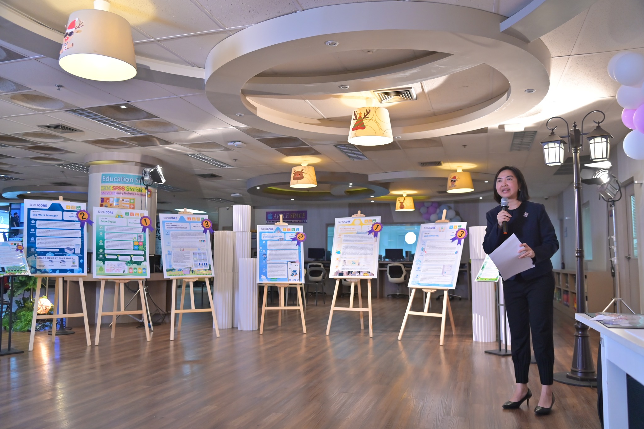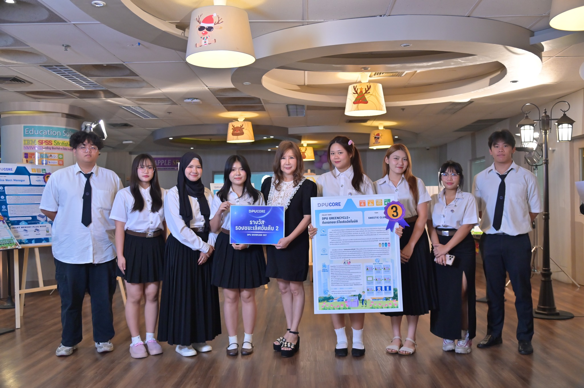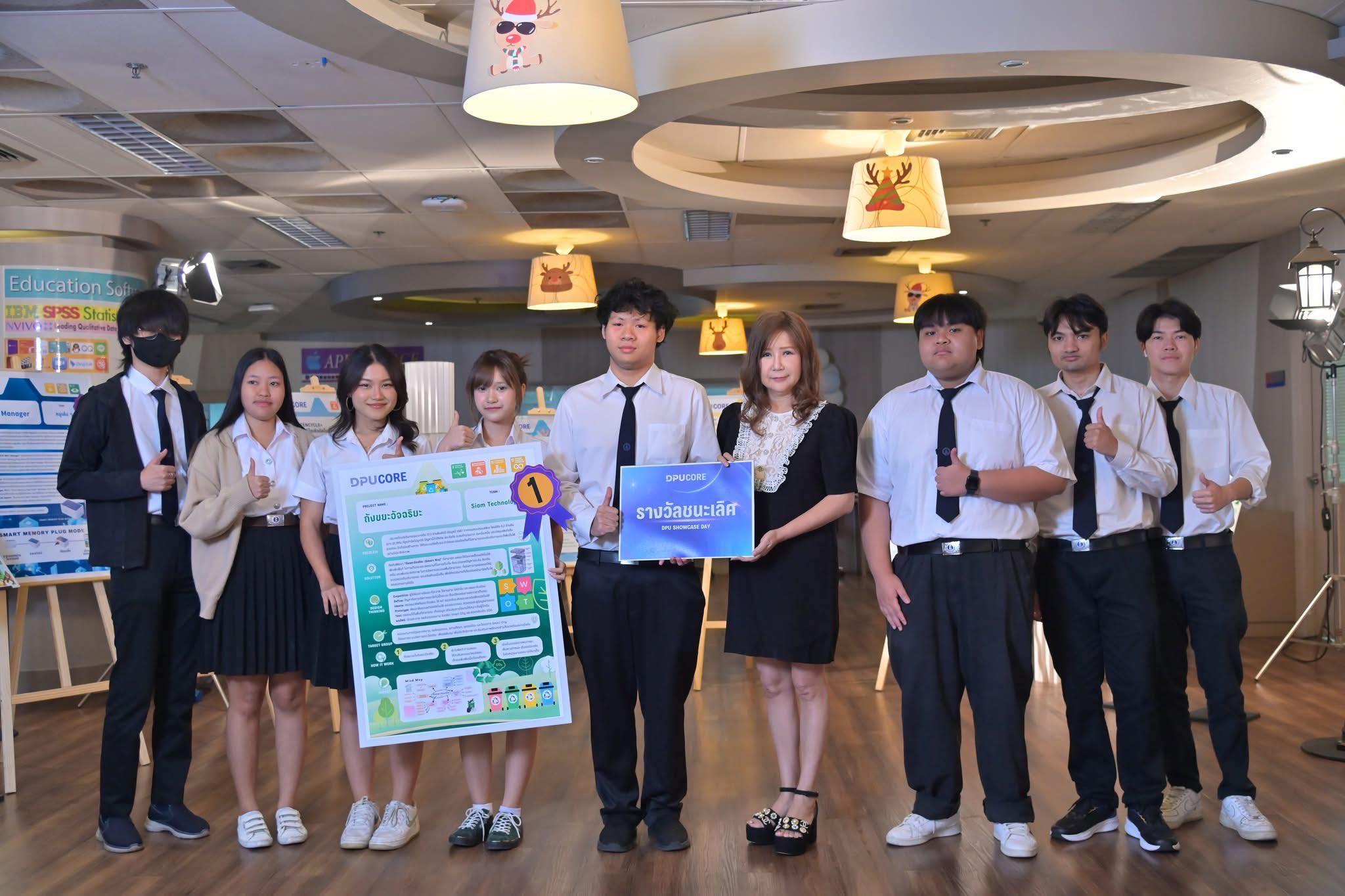 ท่ามกลางวิกฤตสิ่งแวดล้อมและปัญหาขยะล้นเมืองที่ทวีความรุนแรงทั่วโลก มหาวิทยาลัยธุรกิจบัณฑิตย์ (DPU) ได้นำคำถามเพื่อการพัฒนาและแก้ไขปัญหาสังคมมาขับเคลื่อนผ่านการเรียนการสอนในชุดรายวิชา DPU Core ซึ่งเป็นแกนกลางการเรียนรู้ของนักศึกษาทุกคณะ ทุกสาขา ที่เน้นพัฒนาทักษะศตวรรษที่ 21 อาทิ การคิดเชิงระบบ การคิดเชิงสร้างสรรค์ การทำงานเป็นทีม การสื่อสาร และความตระหนักต่อสังคมและสิ่งแวดล้อม โดยมีงาน DPU Core Showcase Day เป็นเวทีปลายทาง ตามแนวคิดของ ดร.ดาริกา ลัทธพิพัฒน์ อธิการบดี ที่เปิดโอกาสให้นักศึกษาได้นำโปรเจกต์จากรายวิชาออกมานำเสนอและทดสอบแนวคิดต่อสายตาคณาจารย์ ผู้บริหาร และผู้เข้าร่วมงานจากภายนอกมหาวิทยาลัย เมื่อวันที่ 19 พฤศจิกายน 2568 ที่ผ่านมา ณ ศูนย์เรียนรู้และหอสมุด DPU