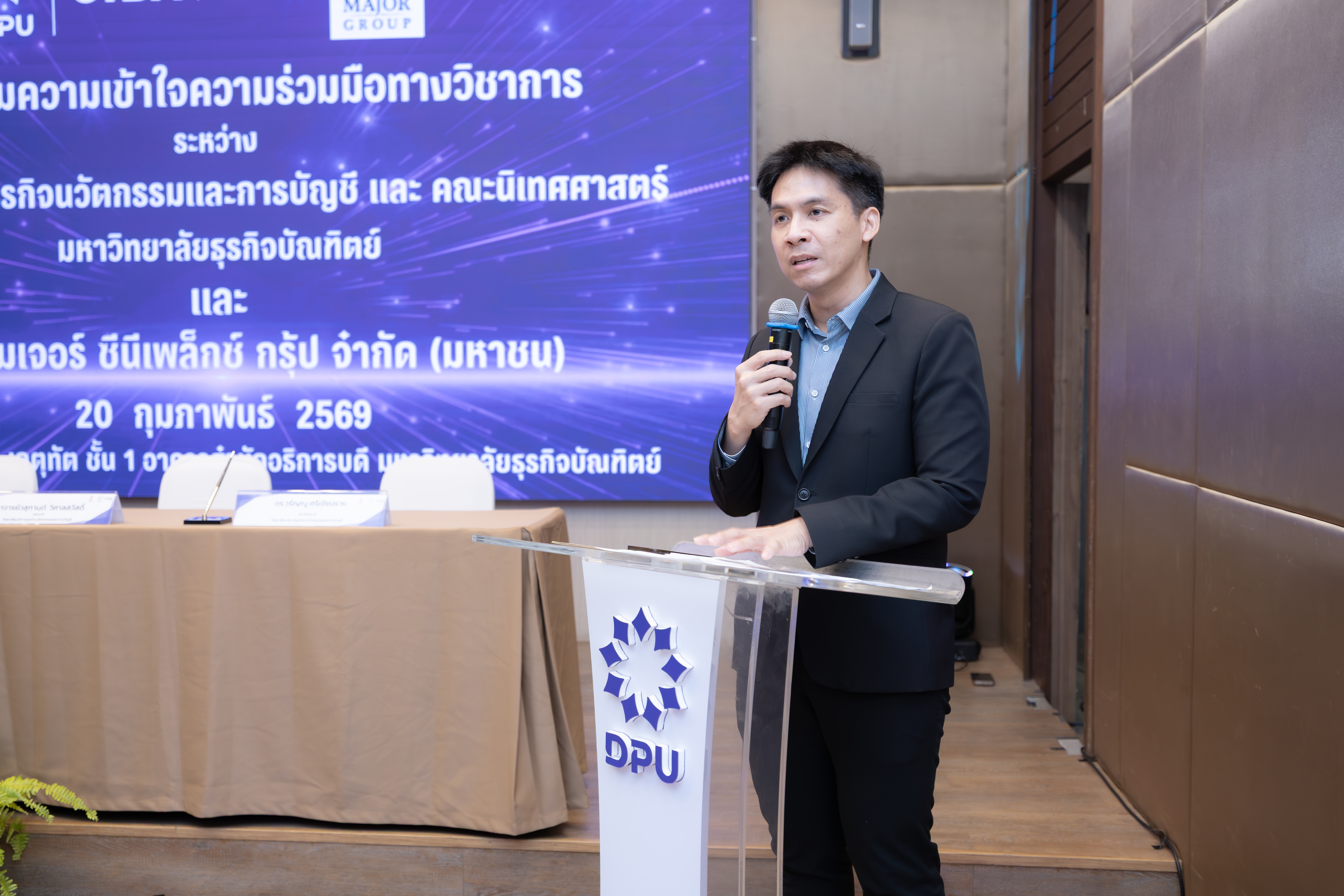 มหาวิทยาลัยธุรกิจบัณฑิตย์ โดย วิทยาลัยบริหารธุรกิจนวัตกรรมและการบัญชี (CIBA) และคณะนิเทศศาสตร์ ลงนามบันทึกความร่วมมือทางวิชาการกับ บริษัท เมเจอร์ ซีนีเพล็กซ์ กรุ้ป จำกัด (มหาชน) เพื่อร่วมกันพัฒนาศักยภาพนักศึกษาให้สอดคล้องกับความต้องการของภาคธุรกิจบันเทิงและอุตสาหกรรมบริการยุคใหม่ เมื่อวันที่ 20 กุมภาพันธ์ 2569 ณ ห้องประชุมสัจจา เกตุทัต มหาวิทยาลัยธุรกิจบัณฑิตย์
