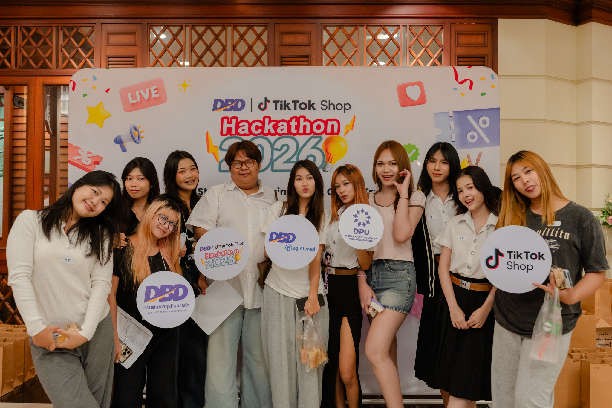 คณะนิเทศศาสตร์ มหาวิทยาลัยธุรกิจบัณฑิตย์ (DPU) เปิดบ้านต้อนรับ กรมพัฒนาธุรกิจการค้า (DBD) และ TikTok Shop จัดโครงการอบรมเชิงปฏิบัติการ “TikTok Shop Hackathon 2026” ณ ห้องประชุม ดร.ไสว สุทธิพิทักษ์ เพื่อส่งเสริมให้นักศึกษาและผู้ประกอบการรุ่นใหม่พัฒนาทักษะการสร้างรายได้ผ่านระบบ Affiliate ที่ถูกต้องตามกฎหมายและมีจริยธรรม โดยใช้เครื่องหมาย DBD Registered เป็นกลไกสร้างความเชื่อมั่นในการปิดยอดขายและยกระดับระบบนิเวศพาณิชย์อิเล็กทรอนิกส์ของไทยให้เติบโตอย่างยั่งยืน เมื่อวันที่ 24 มีนาคม 2569
