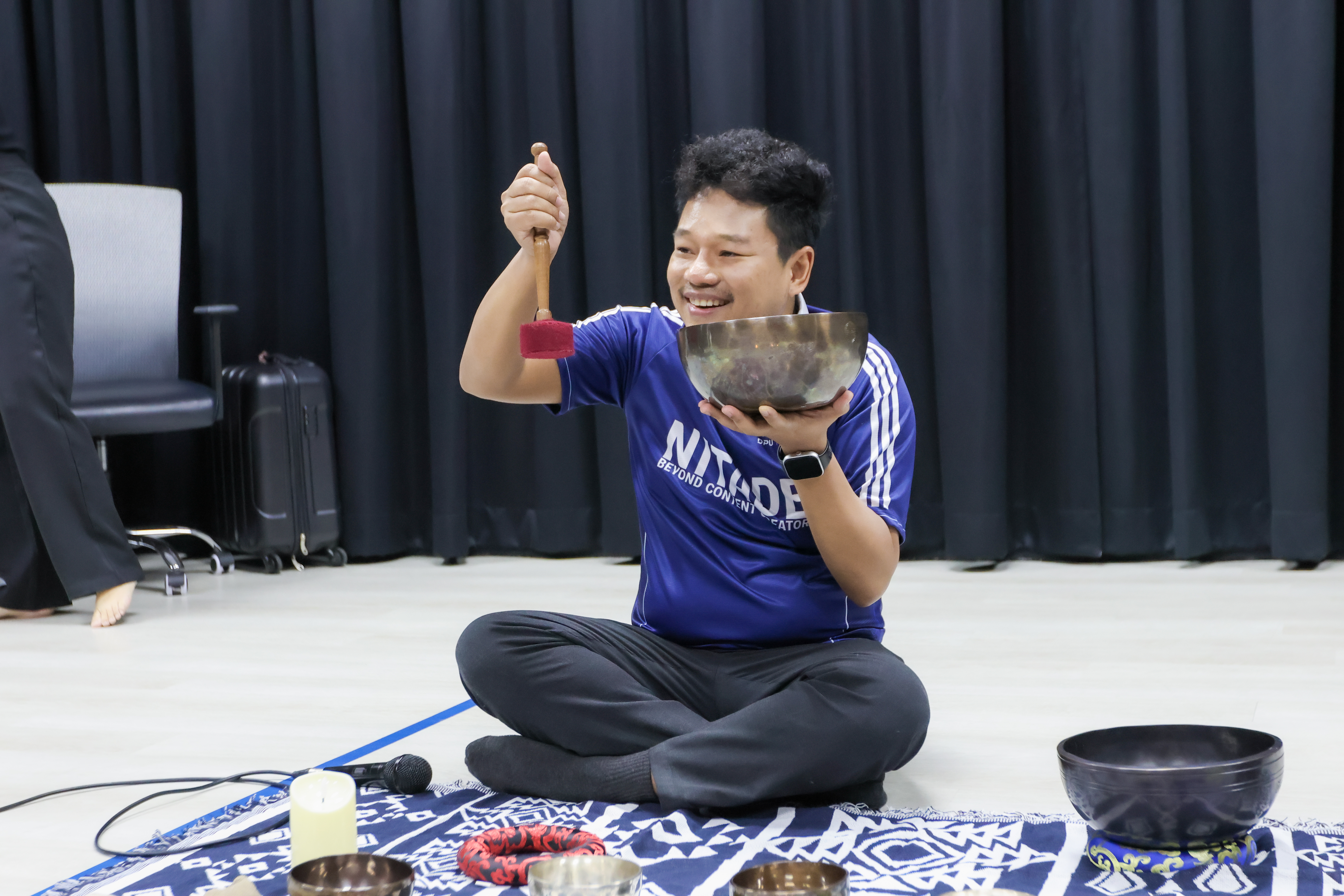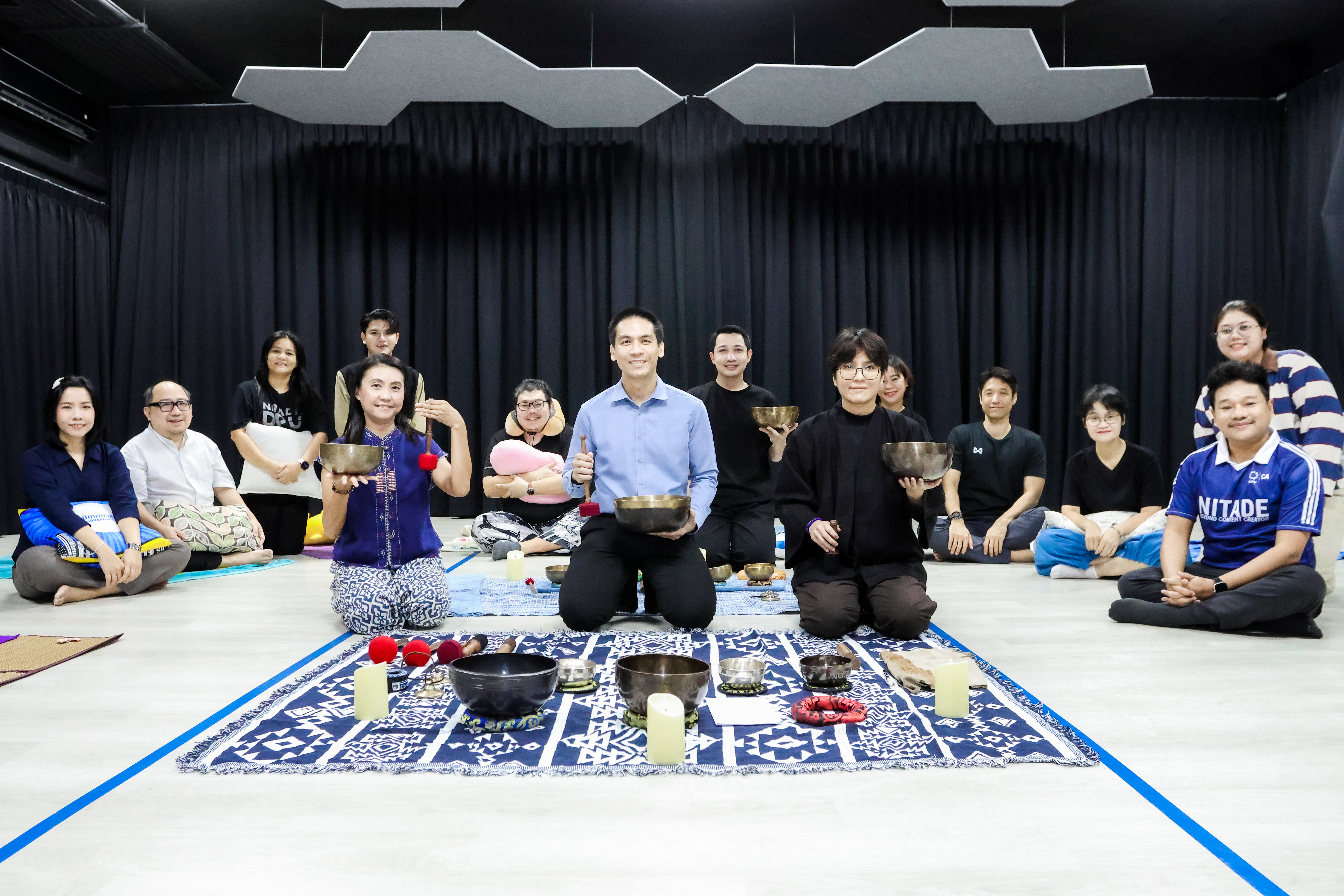 กิจกรรม “Sound Journey of Relaxation” จัดขึ้นภายใต้แนวคิดของคณะนิเทศศาสตร์ DPU ที่มุ่งพัฒนาคุณภาพชีวิตบุคลากรทั้งกาย ใจ และความคิดสร้างสรรค์ เพราะเชื่อว่า “จิตใจที่สงบและสมดุล คือพื้นฐานของการสื่อสารอย่างสร้างสรรค์” ซึ่งเป็นหัวใจของคนทำงานสาย นิเทศศาสตร์ โดยโครงการนี้จัดขึ้นเป็นครั้งที่ 2 จากเดิมที่มุ่งอบรมการให้คำปรึกษาแก่นักศึกษา ร่วมกับนักจิตวิทยา มาสู่การบำบัดด้วยเสียงขันทิเบต ซึ่งได้รับผลตอบรับดี และมีแนวโน้มขยายสู่กลุ่มนักศึกษาในอนาคต เพื่อส่งเสริมสุขภาวะและสร้างสมดุลในการเรียนรู้คนรุ่นใหม่อย่างต่อเนื่อง