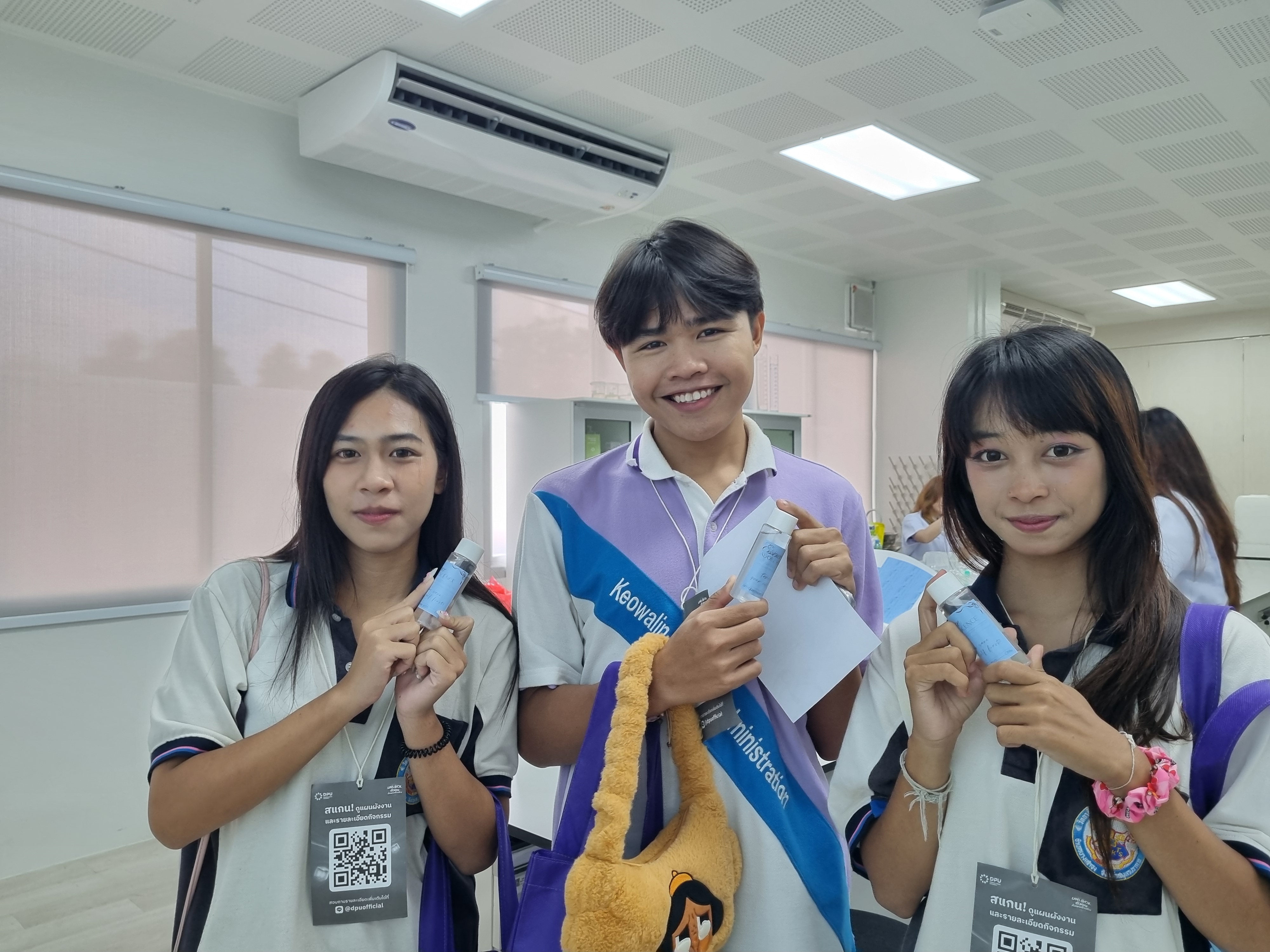 ด้าน นายธัญธร อาดัม หรือ “น้องซา” นักเรียนหลักสูตรประกาศนียบัตรวิชาชีพ (ปวช.) ปีที่ 3 จากวิทยาลัยเทคโนโลยีเกวลินบริหารธุรกิจ จังหวัดสมุทรปราการ ซึ่งเดินทางมาร่วมงาน DPU Open House 2025 พร้อมเพื่อน เล่าว่า ตนสนใจสายงานด้านสุขภาพและความงามเป็นพิเศษ เพราะตั้งใจอยากเป็นเจ้าของผลิตภัณฑ์เครื่องสำอางในอนาคต จึงต้องการศึกษาต่อในสาขาที่เกี่ยวข้องกับการพัฒนาผลิตภัณฑ์และธุรกิจความงาม ซึ่งการมาเยี่ยมชมกิจกรรมของ วิทยาลัยการแพทย์แบบบูรณาการ ช่วยเปิดมุมมองใหม่อย่างมาก โดยเฉพาะเวิร์กช็อปที่ได้ทดลองดูส่วนผสม ทดลองพัฒนาผลิตภัณฑ์ และลงมือปฏิบัติจริงในแต่ละฐาน ทำให้เข้าใจว่า “ส่วนผสมแบบไหนเหมาะกับผิวอะไร และสามารถต่อยอดพัฒนาเป็นสูตรของตัวเองได้” ยิ่งมั่นใจว่าหากได้มาเรียนที่นี่ จะสามารถพัฒนาเป็นเจ้าของผลิตภัณฑ์ของตัวเองได้ในอนาคตอย่างแน่นอน