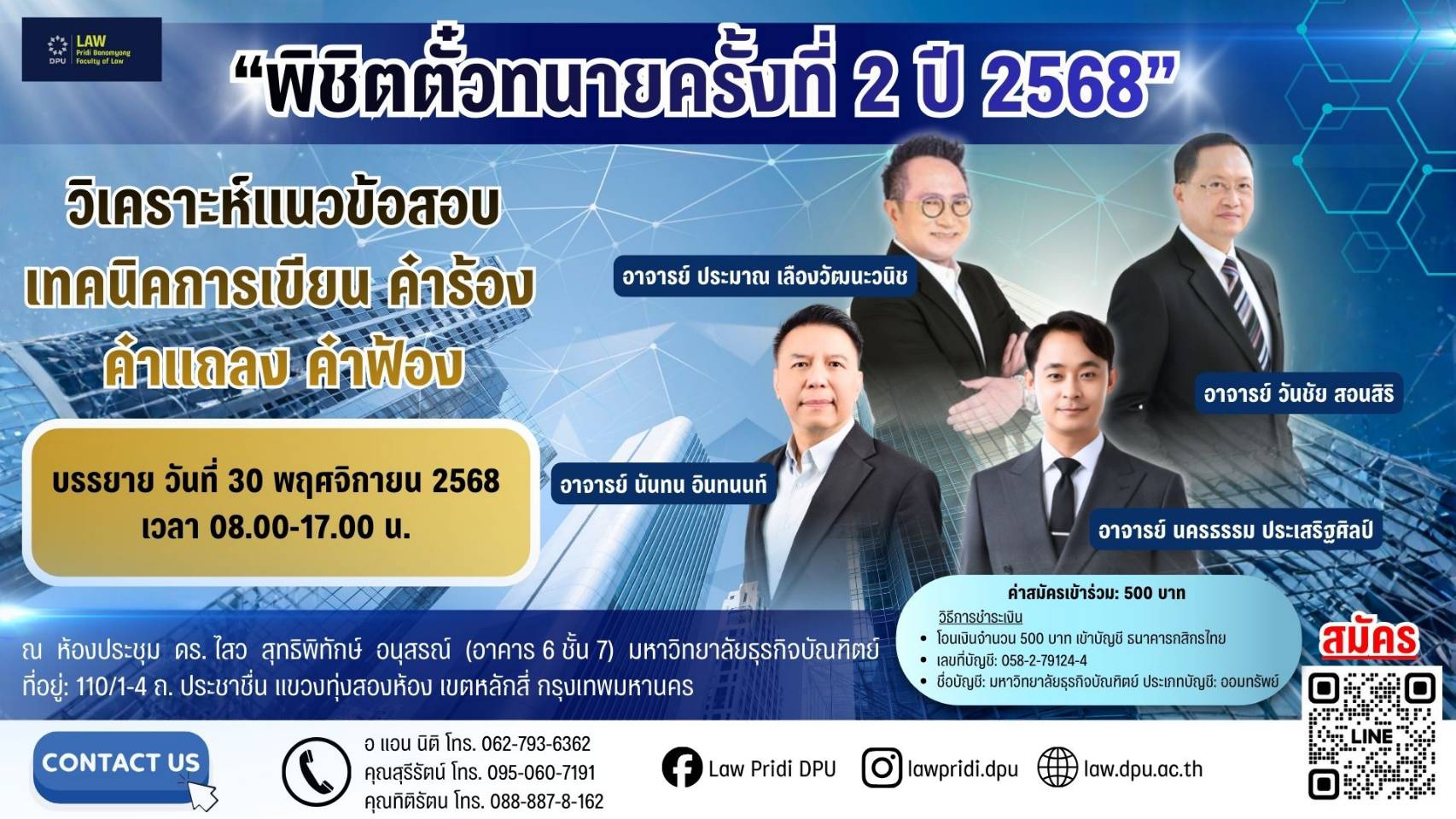 นิติศาสตร์ปรีดี พนมยงค์ DPU เปิดหลักสูตรพิชิตตั๋วทนาย ติวเข้ม เทคนิคร่างคำคู่ความ ครบทุกมิติ