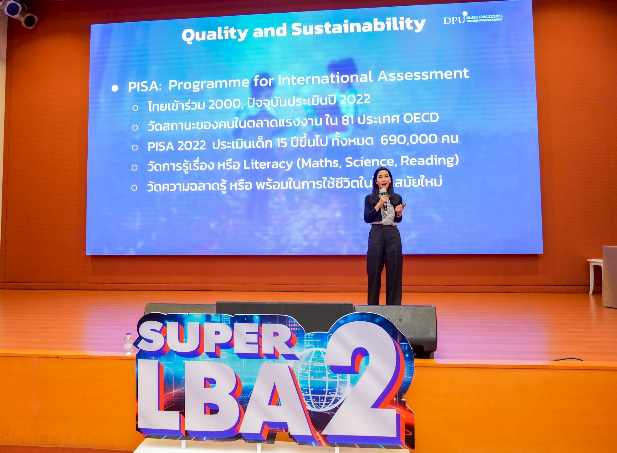 สำหรับ Special Talk by Special Guest: จัดการเชิงกลยุทธ์ในยุคดิจิทัลให้ประสบความสำเร็จ: ประสบการณ์จริงในการบริหารสถาบันการศึกษา ถือเป็นไฮไลต์สำคัญของวันนี้โดย ดร. ดาริกา ลัทธพิพัฒน์ อธิการบดีมหาวิทยาลัยธุรกิจบัณฑิตย์ ในฐานะรุ่นพี่ Super LBA รุ่นที่ 1 ได้แบ่งปันประสบการณ์และความท้าทายในการบริหารสถาบันการศึกษา รวมถึงภาพรวมของการศึกษาไทยและแนวโน้มการศึกษาในอนาคต โดยมุ่งเน้นไปที่ "โอกาสและความท้าทายของการศึกษาไทย"