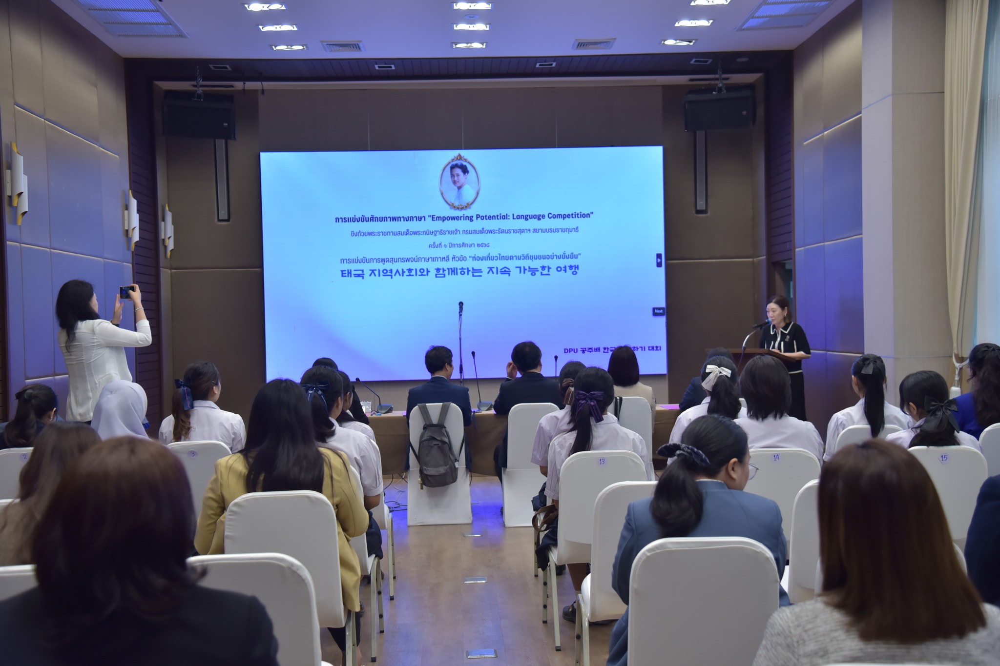 “การแข่งขันครั้งนี้เป็นเวทีให้นักเรียนได้แสดงความสามารถทางภาษาทั้ง 4 ภาษา ผ่านรูปแบบที่กำหนดไว้ในการแข่งขันสอดรับกับทักษะและการใช้งานจริงในโลกปัจจุบัน เพื่อสนับสนุนและส่งเสริมศักยภาพของนักเรียน ตามความเชื่อของ DPU ว่ามนุษย์ทุกคนมีศักยภาพที่หลากหลาย เรามีหน้าที่สร้างกลไกในการดึงศักยภาพและพัฒนาทักษะเหล่านั้นให้เด็กและเยาวชน เพื่อนำมาพัฒนาสังคมและประเทศชาติต่อไป” รองอธิการบดีสายงานวิชาการ DPU กล่าว