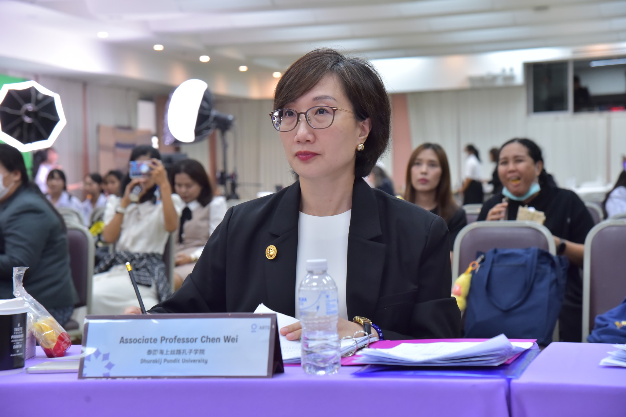 ผศ.ดร.พัทธนันท์ กล่าวว่า การแข่งขันประกวดศักยภาพทางภาษาครั้งนี้จัดขึ้นครั้งแรก เนื่องจากโลกปัจจุบันมีการเปลี่ยนแปลงอย่างรวดเร็ว ทักษะด้านภาษาเป็นทุนแห่งโอกาสและเครื่องมือในการเข้าสู่สังคมและเศรษฐกิจสากล ซึ่ง DPU ได้นำ AI เข้ามาใช้เพิ่มประสิทธิภาพการเรียนการสอนภาษาทั้ง 4 หลักสูตร เพื่อพัฒนาทักษะนักศึกษาให้ตอบโจทย์ธุรกิจของโลกในอนาคต และมุ่งสร้างเครือข่ายนานาชาติกับสถาบันทางภาษาในต่างประเทศเพื่อพัฒนาการเรียนการสอน เพราะภาษาและวัฒนธรรมของแต่ละชาติเชื่อมโยงกันอย่างแยกไม่ออก การที่นักศึกษาได้เรียนรู้จากเจ้าของภาษา จึงเป็นการเรียนรู้วัฒนธรรมของแต่ละชาติโดยตรงไปพร้อมกัน ทั้งนี้ เพื่อให้พร้อมสำหรับการสื่อสารข้ามวัฒนธรรม และทำงานร่วมกับผู้อื่นในพหุวัฒนธรรมได้