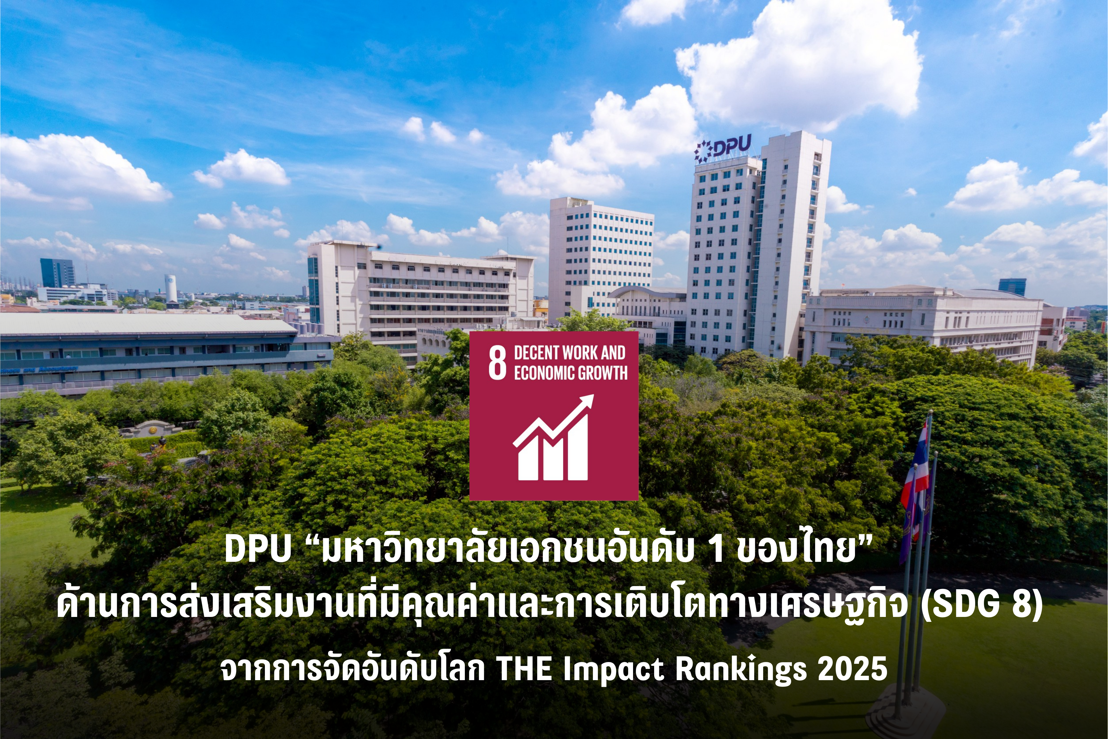 DPU ผงาดเอกชนอันดับหนึ่งไทย SDG 8 จากเวทีโลก THE Impact Rankings 2025