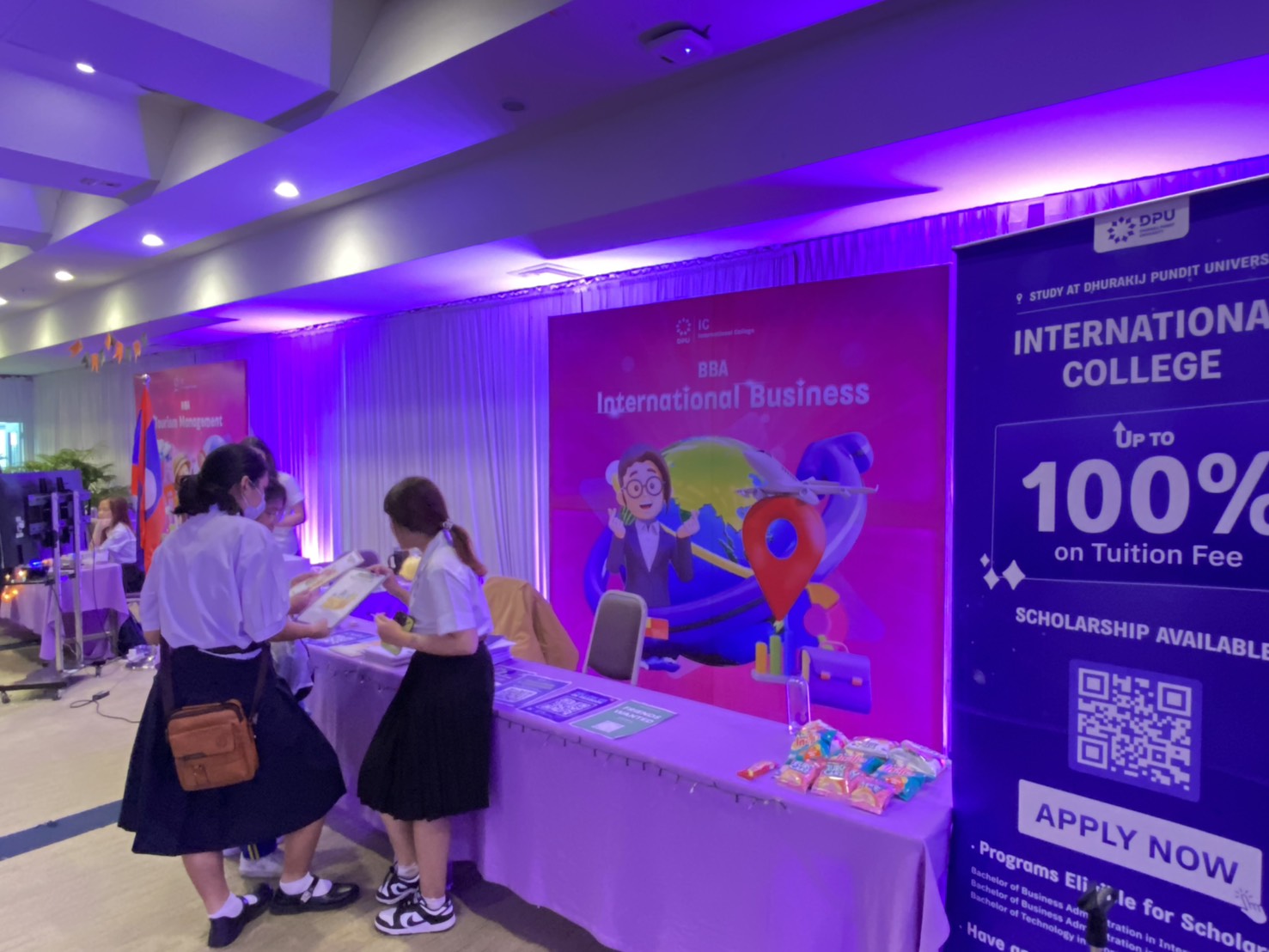 ถัดมาคือ วิทยาลัยนานาชาติ ชูประสบการณ์จริงระดับสากล โดยมีทางเลือกเสริมเป็น Double Degree จากประเทศอังกฤษ และด้วยจุดแข็งด้านนักศึกษาต่างชาติที่เพิ่มขึ้นต่อเนื่อง มีเครือข่ายโครงการแลกเปลี่ยนในหลายประเทศ ทั้งโครงการระยะสั้นและระยะยาว ที่ส่งนักศึกษาไปเรียนรู้ในประเทศต่าง ๆ เช่น สิงคโปร์ อินเดีย ฝรั่งเศส เดนมาร์ก และรัสเซีย ซึ่งหลักสูตรเด่นของวิทยาลัยนานาชาติ ได้แก่ International Business Management (มีความร่วมมือ Double Degree กับ University of Sunderland ประเทศอังกฤษ) เพื่อให้นักศึกษาตามโลกทันและเพิ่มมุมมองระดับสากล ในงาน Open House ปีนี้ วิทยาลัยนานาชาติ แนะนำหลักสูตรหลักที่เปิดสอนอยู่ ได้แก่ หลักสูตรบริหารธุรกิจระหว่างประเทศ (International Business Management), หลักสูตรระบบสารสนเทศเพื่อธุรกิจดิจิทัล (Digital Business Information Systems) และ หลักสูตรการจัดการการท่องเที่ยว (Tourism Management) โดยปีการศึกษาหน้าจะเปิดตัว 2 หลักสูตรใหม่ ได้แก่ หลักสูตรการจัดการธุรกิจการบิน (Aviation Business Management) และ หลักสูตรมัลติมีเดียเพื่อธุรกิจระหว่างประเทศ (Multimedia for International Business) นอกจากนี้ยังมีทุนภาษาอังกฤษสูงสุด 100% สำหรับนักเรียนที่มีผลสอบ IELTS ตามเกณฑ์ ช่วยเพิ่มโอกาสเข้าถึงการศึกษานานาชาติได้มากขึ้น