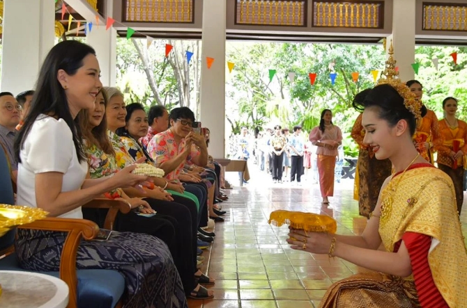 ขณะที่ วิทยาลัยนานาชาติ DPU ได้จัดกิจกรรมเพื่อสืบสานประเพณีไทยให้กับบุคลากรและนักศึกษาต่างชาติด้วยเช่นกัน เมื่อวันที่ 8 เมษายน 2568 ที่ผ่านมา โดยมี “พิธีสรงน้ำพระ และ รดน้ำดำหัวผู้ใหญ่” ที่คณาจารย์ของวิทยาลัยเป็นตัวแทน เพื่อให้นักศึกษาต่างชาติได้เรียนรู้วัฒนธรรมการแสดงความรักและเคารพต่อผู้มีพระคุณ นอกจากนี้ยังมีการแสดงพิเศษจากนักศึกษาชาวเมียนมา และกิจกรรมให้นักศึกษาต่างชาติได้ร่วมทำพวงมาลัยเพื่อใช้ในการสรงน้ำพระ เสริมสร้างบรรยากาศแห่งการเรียนรู้ร่วมกันและการแลกเปลี่ยนวัฒนธรรมระหว่างประเทศอย่างลึกซึ้งและงดงาม