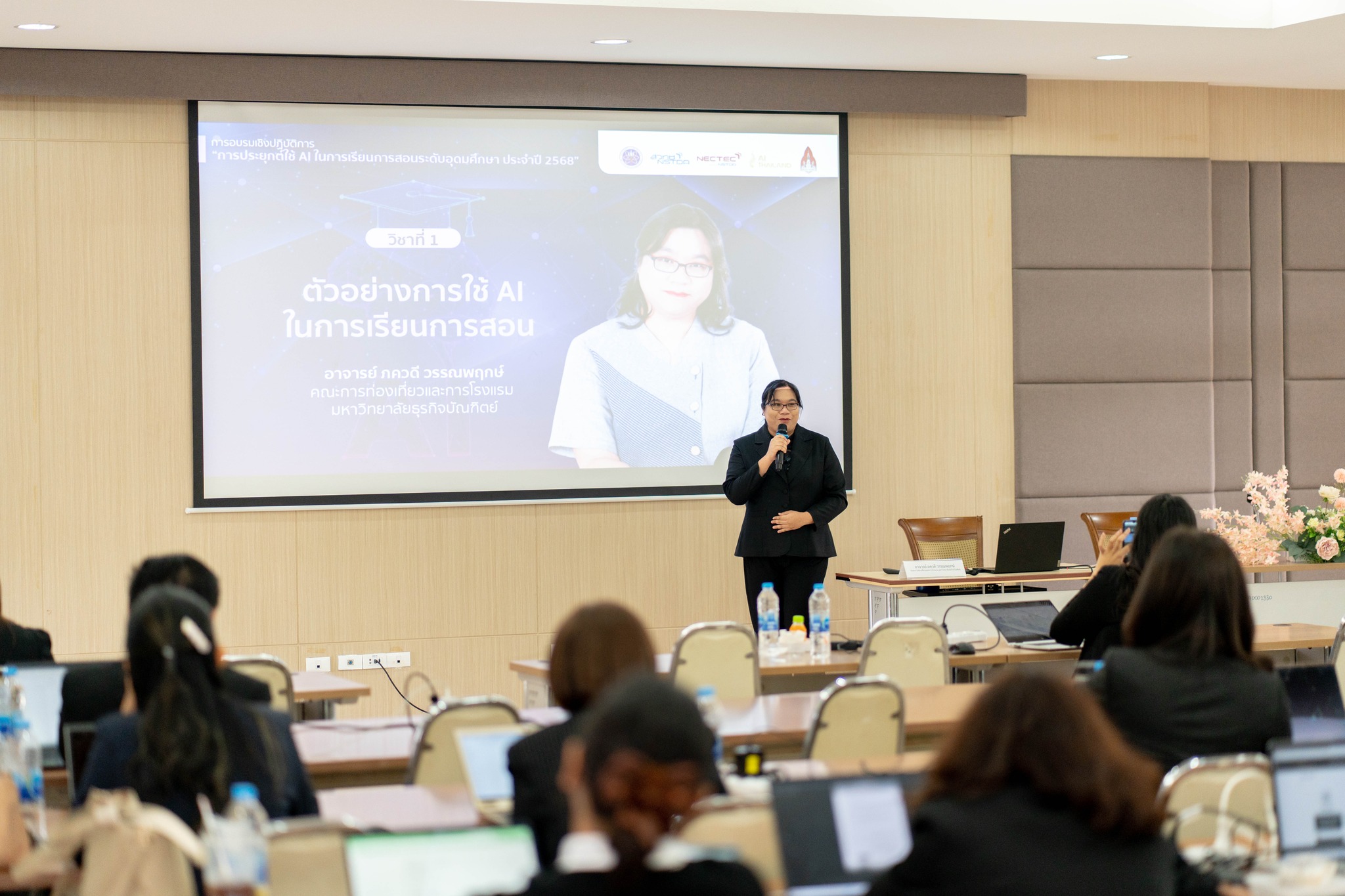 มหาวิทยาลัยธุรกิจบัณฑิตย์ (DPU) ร่วมกับสำนักงานปลัดกระทรวงการอุดมศึกษา วิทยาศาสตร์ วิจัยและนวัตกรรม (สป.อว.) และหน่วยงานในสังกัดอย่างสำนักงานพัฒนาวิทยาศาสตร์และเทคโนโลยีแห่งชาติ (สวทช.) โดยศูนย์เทคโนโลยีอิเล็กทรอนิกส์และคอมพิวเตอร์แห่งชาติ (NECTEC) ได้เปิดตัวโครงการอบรมเชิงปฏิบัติการ “การประยุกต์ใช้ AI เพื่อการเรียนการสอนระดับอุดมศึกษา” ประจำปี 2568 เพื่อขับเคลื่อนนโยบาย “AI for Education” ของกระทรวง อว. โดยมีเป้าหมายพัฒนาศักยภาพอาจารย์ในสถาบันอุดมศึกษาทั่วประเทศให้สามารถใช้เครื่องมือ AI ออกแบบการเรียนรู้เชิงรุกได้อย่างเหมาะสม