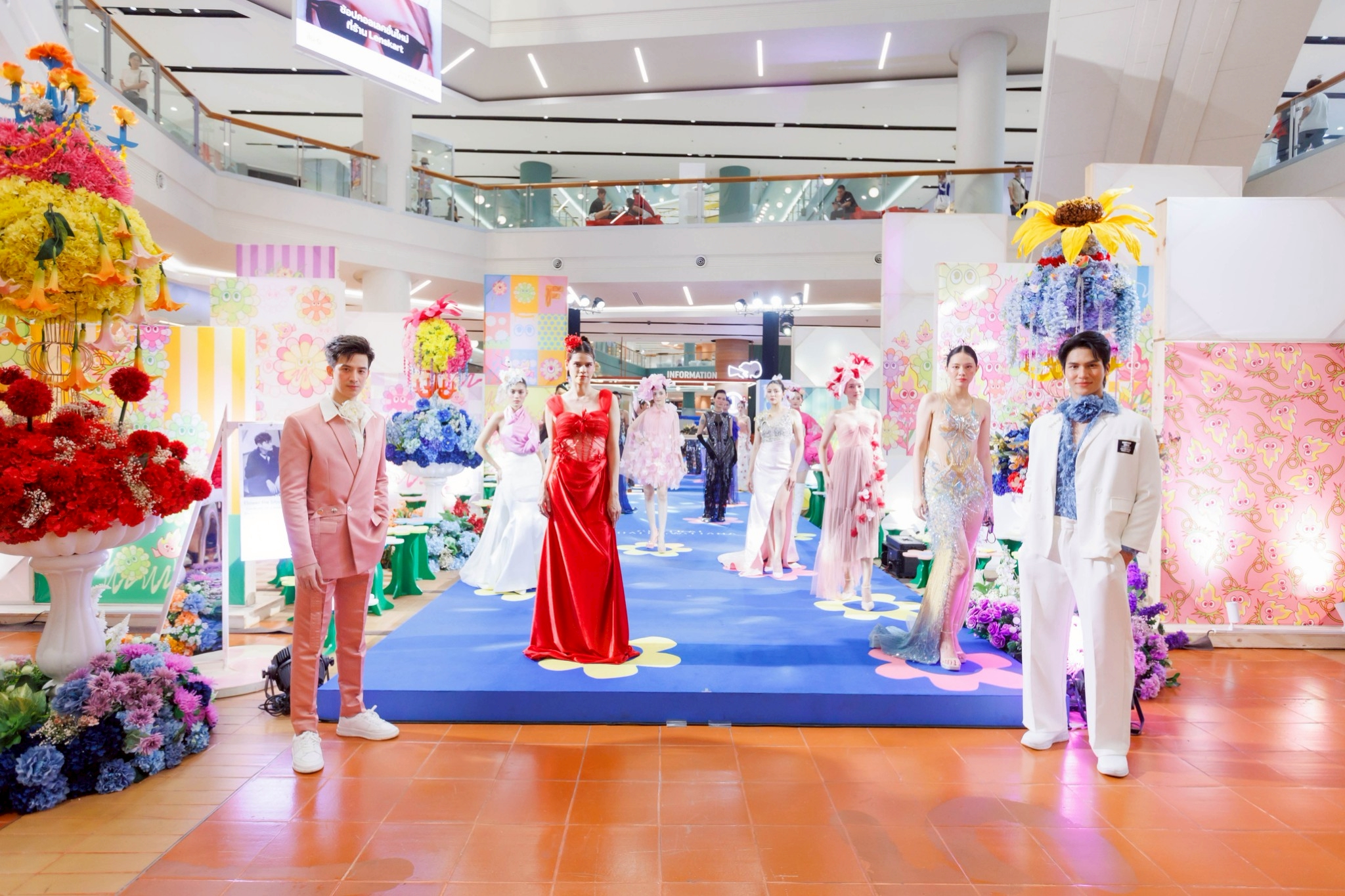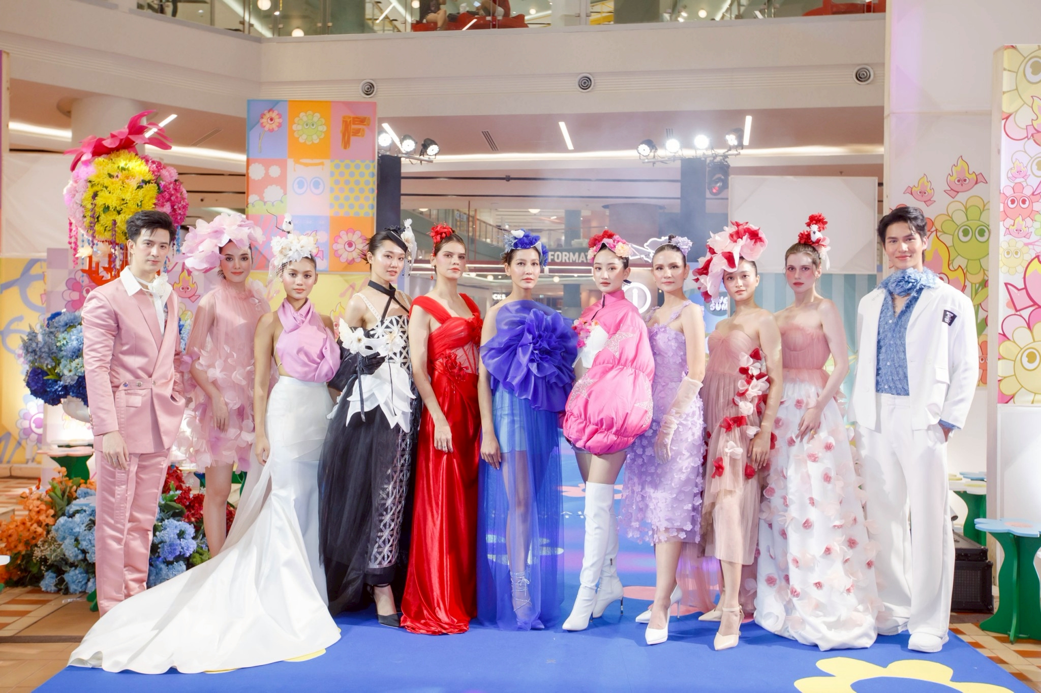 ผลงานแฟชั่นทั้ง 14 ชุดสะท้อนถึงความหลากหลายของดอกไม้ เช่น ดอกพีโอนี่สีหวานละมุน ดอกคันนาลิลลี่ที่สง่างาม และดอกกล้วยไม้มอนนิเอร่าที่แสดงถึงความแข็งแกร่ง โดยได้รับการตกแต่งบรรยากาศในธีม “Flower Fire Bloom” จากศิลปินหนุ่มแนวป๊อปอาร์ต “The Jum” และคาแรคเตอร์ "น้องไฟ"