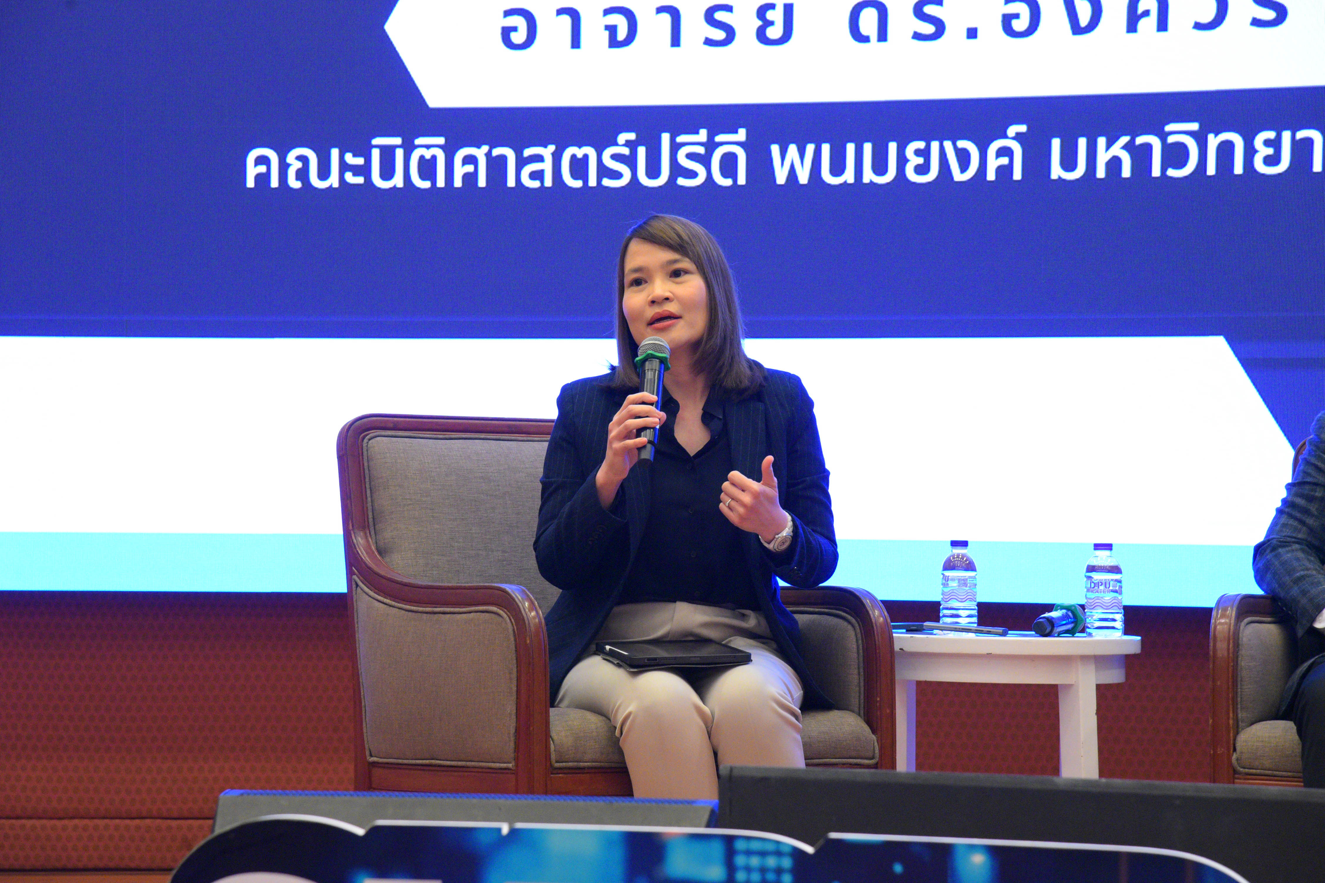 ดร.อังค์วรา ไชยอนงค์ รองคณบดีฝ่ายบริหาร คณะนิติศาสตร์ปรีดี พนมยงค์ DPU เปิดเวทีบรรยายด้วยการเน้นย้ำถึงกฎหมายทรัพย์สินทางปัญญาเป็นมากกว่าแค่เรื่องลิขสิทธิ์ แต่คือสิ่งจำเป็นอย่างยิ่งสำหรับธุรกิจสมัยใหม่ พร้อมกับชี้ให้เห็นว่า ในยุคที่ธุรกิจขับเคลื่อนด้วยนวัตกรรมและความคิดสร้างสรรค์ ทรัพย์สินทางปัญญาเปรียบเสมือน “สินทรัพย์ที่จับต้องไม่ได้” และยังมีศักยภาพในการสร้างมูลค่ามหาศาล