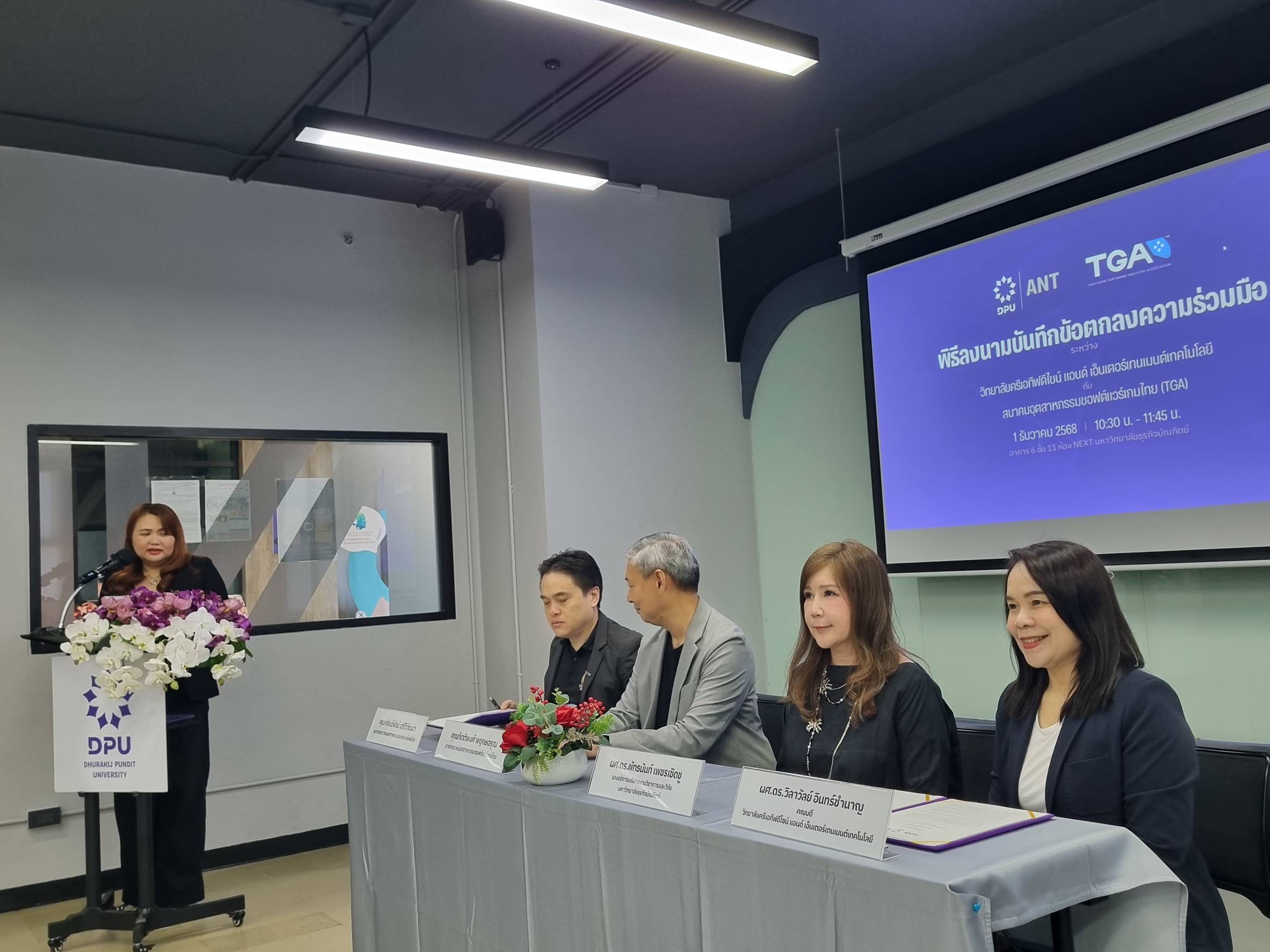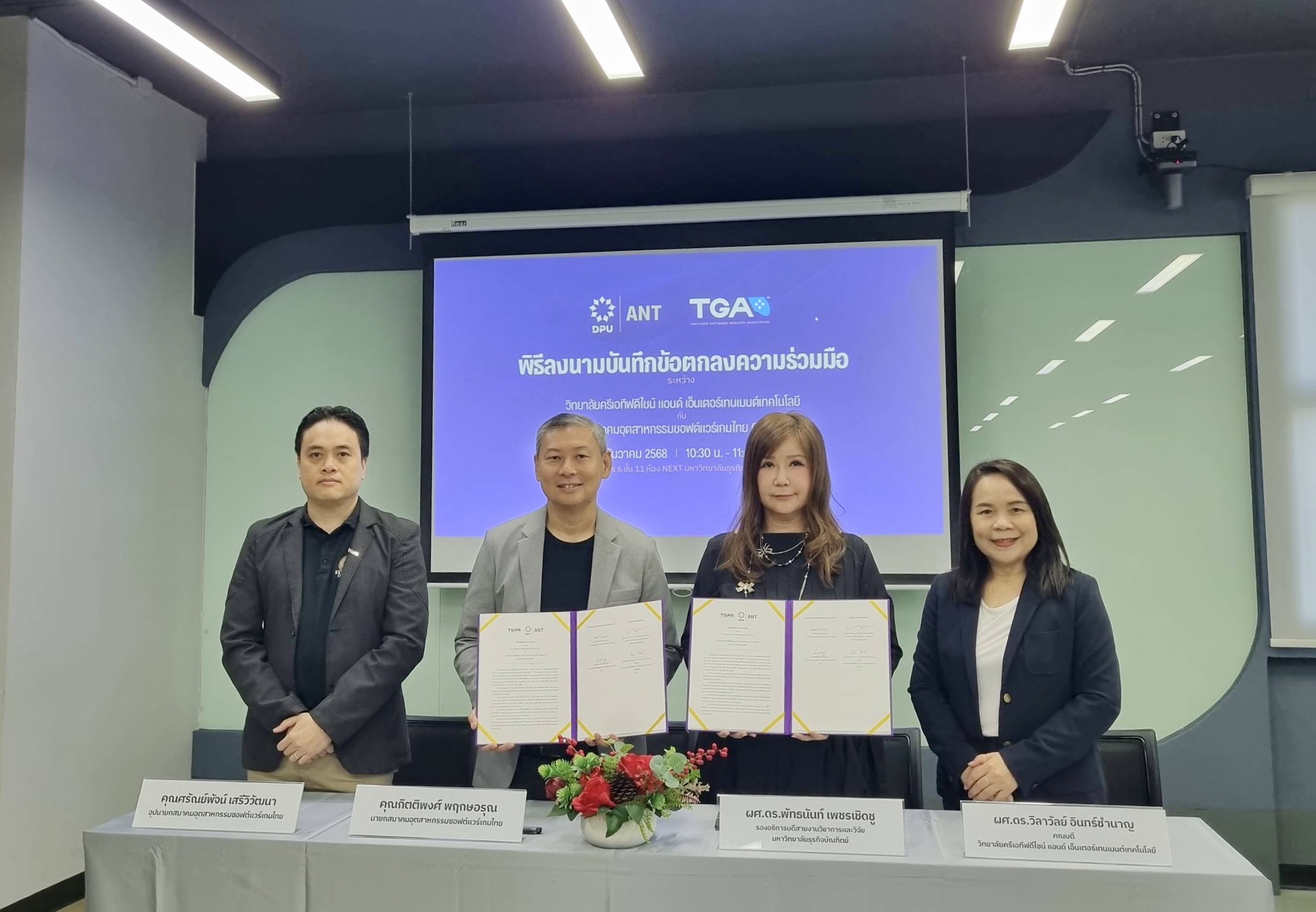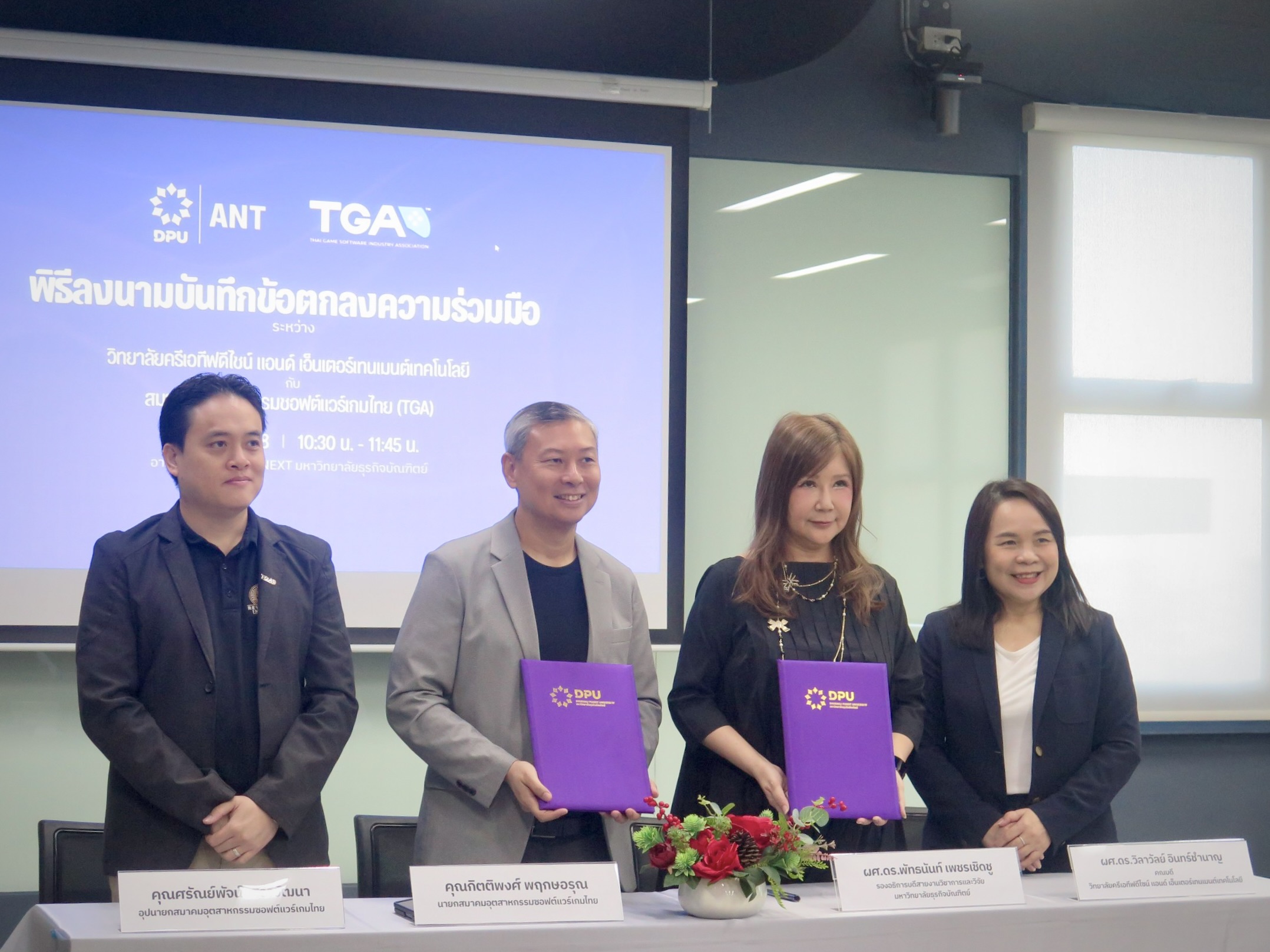 วิทยาลัยครีเอทีฟดีไซน์ แอนด์ เอ็นเตอร์เทนเมนต์ เทคโนโลยี มหาวิทยาลัยธุรกิจบัณฑิตย์ (DPU) ลงนามบันทึกข้อตกลงความร่วมมือกับสมาคมอุตสาหกรรมซอฟต์แวร์เกมไทย (TGA) เพื่อพัฒนาศักยภาพบุคลากรด้านเกมแบบครบวงจร ตั้งแต่งานวิจัย เทคโนโลยี การเรียนการสอน ไปจนถึงการต่อยอดผลงานนักศึกษาสู่เชิงพาณิชย์ มุ่งยกระดับอุตสาหกรรมเกมไทยให้ก้าวสู่เวทีนานาชาติในฐานะ Soft Power สำคัญของประเทศ