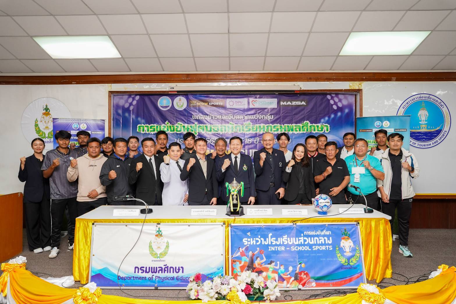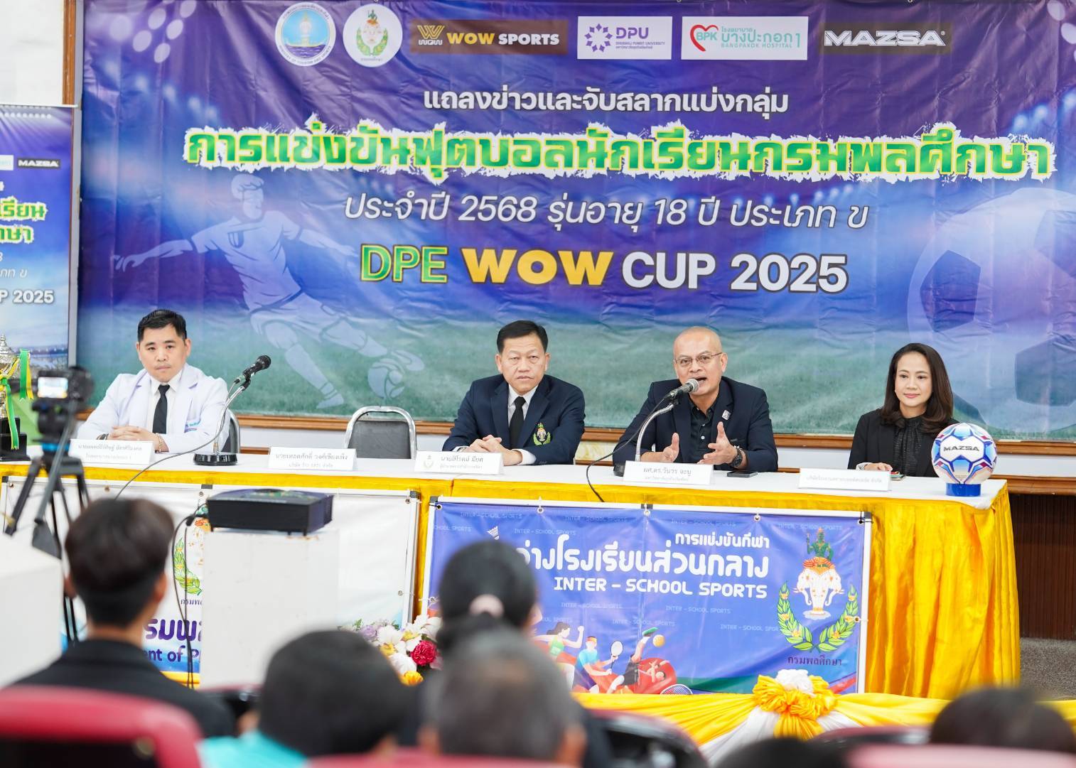 เมื่อวันที่ 28 พฤศจิกายน 2568 กรมพลศึกษา ร่วมกับมหาวิทยาลัยธุรกิจบัณฑิตย์ (DPU) , บริษัท ว้าว 1971 จำกัด ,โรงพยาบาลบางปะกอก 1 และ บริษัท โรงงานสยามบอลล์สปอร์ต จำกัด จัดแถลงข่าวการแข่งขันกีฬาฟุตบอลนักเรียน ประจำปีการศึกษา 2568 รุ่นอายุไม่เกิน 18 ปี ประเภท ข ภายใต้ชื่องาน “DPE WOW CUP 2025” โดยมี นายสิโรตม์ มียศ ผู้อำนวยการสำนักการกีฬา กรมพลศึกษา เป็นประธานในงาน พร้อมด้วย ผศ.ดร.วันวร จะนู ผู้เชี่ยวชาญพิเศษอาวุโส ฝ่าย General Support & Services มหาวิทยาลัยธุรกิจบัณฑิตย์ และ นายเทอดศักดิ์ วงศ์เชียงเพ็ง ประธานบริษัท ว้าว 1971 จำกัด ณ ห้องประชุมศุภชลาศัย สนามกีฬาแห่งชาติ กรุงเทพมหานคร