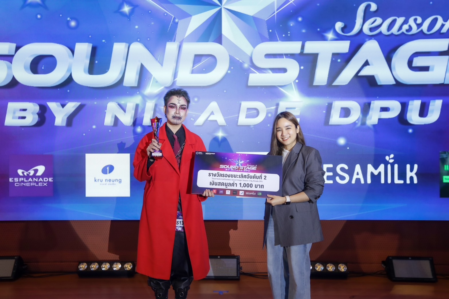 สำหรับผลการประกวด “SOUND STAGE Season 2 by NITADE DPU” รางวัลชนะเลิศ ได้แก่ นายธีรภัทร ปลาทอง หลักสูตรการสร้างสรรค์ดิจิทัลคอนเทนต์และสื่อ ชั้นปีที่ 3 , รางวัลรองชนะเลิศ อันดับ 1 ได้แก่ นางสาวกิตติมา มาโยธา หลักสูตรการสื่อสารการแสดงดิจิทัล ชั้นปีที่ 1 , รางวัลรองชนะเลิศ อันดับ 2 ได้แก่ นายพชกร บุญหล้ายิ่ง หลักสูตรการสื่อสารการแสดงดิจิทัล ชั้นปีที่ 1 ส่วนรางวัลชมเชย ได้แก่ นางสาวชนินาถ เหลืองงาม หลักสูตรการสื่อสารการแสดงดิจิทัล ชั้นปีที่ 1 , นายธราธิป คำป้อง หลักสูตรการสร้างสรรค์ดิจิทัลคอนเทนต์และสื่อ ชั้นปีที่ 1 ปิดท้ายกันที่รางวัลขวัญใจ THE iCON CLINIC ได้แก่ นางสาวกิตติมา มาโยธา หลักสูตรการสื่อสารการแสดงดิจิทัล ชั้นปีที่ 1 , นายธราธิป คำป้อง หลักสูตรการสร้างสรรค์ดิจิทัลคอนเทนต์และสื่อ ชั้นปีที่ 1